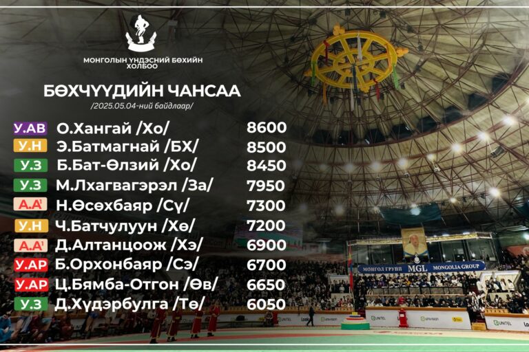 Бөхчүүдийн чансаагаар О.Хангай тэргүүллээ хадгалж Э.Батмагнай удааллаа
