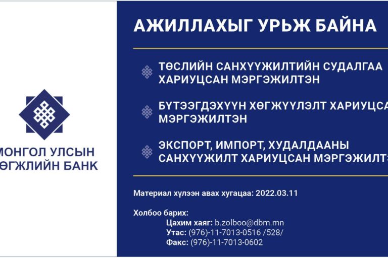 МОНГОЛ УЛСЫН ХӨГЖЛИЙН БАНКАНД АЖИЛЛАХЫГ УРЬЖ БАЙНА