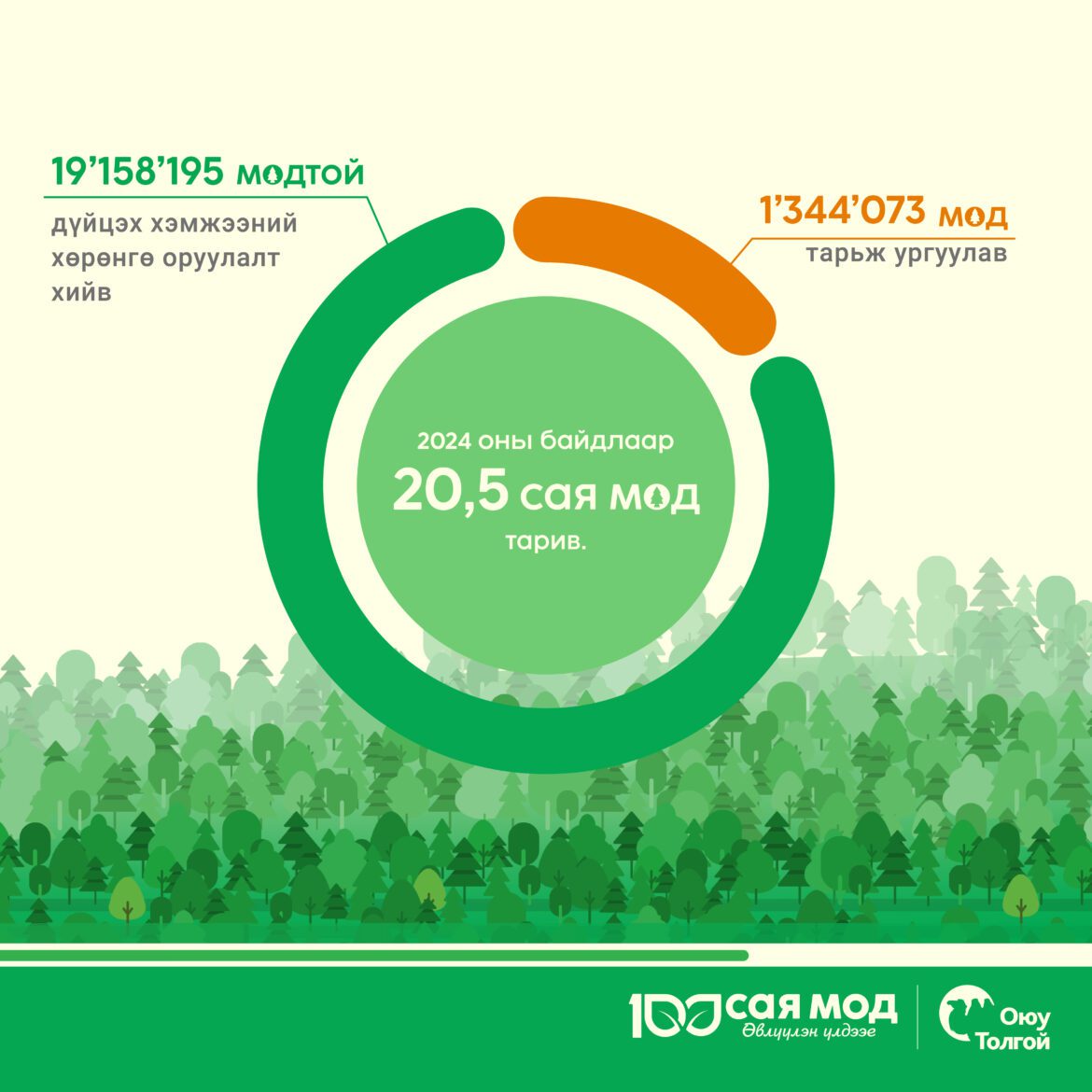 “Оюу толгой” компани 2022 оноос эхлэн “100 сая мод” санаачилгаа үндсэн дөрвөн стратеги баримтлан хэрэгжүүлж буй аж.