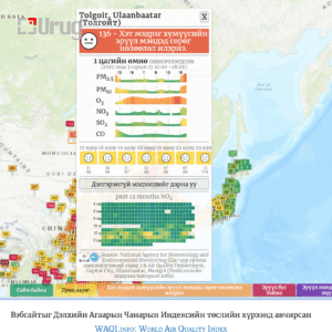 Дэлхийн агаарын чанарын индексийн үзүүлэлтээр яг одоо 2025.03.17 22:17 минутын байдлаар Монгол улсад хамгийн агаарын бохирдолтой байгаа газар нь Дархан хот байна. Тодруулбал Дархан хотын агаарын бохирдлын хэмжээ 151 буюу эрүүл бус байна. Харин Улаанбаатар хотын агаарын бохирдол Толгойт орчимд 136 буюу хэт мэдрэг хүмүүсийн эрүүл мэндэд сөрөг нөлөө үзүүлэхээр байна.