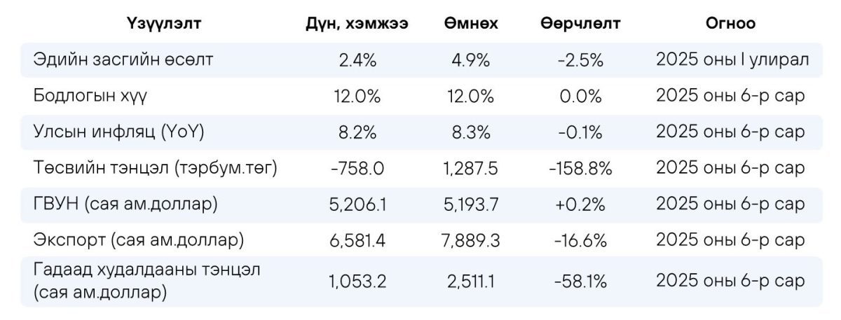 Эдийн засагт энэ оны эхний хагас жилийн тайлангуудаас өнгөтэй тоо огт харагдсангүй.