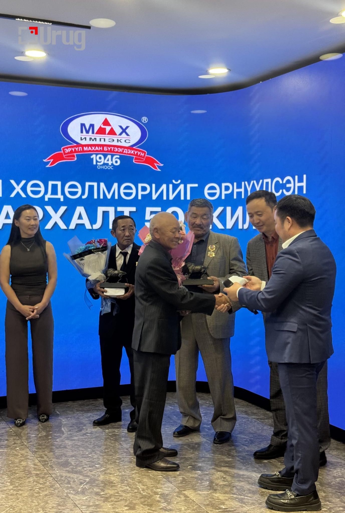ТАСРАЛТГҮЙ 5𝟎 ЖИЛИЙН турш үнэнч сэтгэл, тууштай хөдөлмөрөөрөө Мах Импэксийн нэрийн өмнөөс зүтгэсэн эрхэм хүндэт ахмад ажилтнуудаа өнөөдөр хүндэтгэн хүлээн авч, Мах Импэкс ХК-ийн билэгдэл болсон хүрэл хийцтэй Бухын баримал, дурсгалын бэлэг болон мөнгөн шагнал гардуулан хүндэтгэл үзүүллээ.