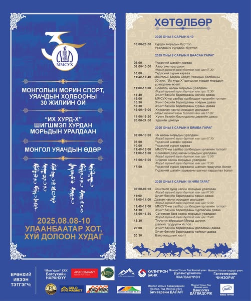 Монголын Морин Спорт Уяачдын Холбооны санал санаачилгын дагуу 1998 онд Өвөрхангай аймгийн Хархорин суманд зохион байгуулагдаж түүнээс хойш гурван жил тутам уламжлал болгон зохион байгуулж ирсэн Морины олимп, Монголын шигшмэл хурдан морьдын “Их Хурд 10” уралдаан өнөө жил Улаанбаатар хот, Хүй долоон худагт зохион байгуулагдах гэж байна.