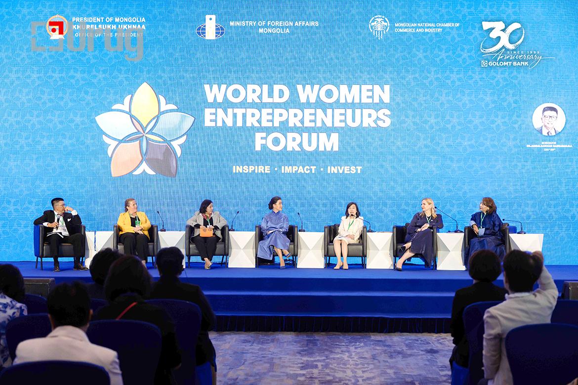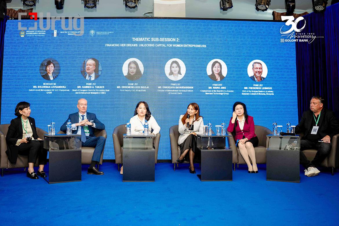 Голомт банк эмэгтэй бизнес эрхлэгчдийг дэмжих санаачилга, чиглэлд идэвх, оролцоотой ажиллаж ирсний хувьд Монгол Улсад зохион байгуулагдсан энэхүү чуулга уулзалтад 2 дахь жилдээ хамтран ажиллалаа. Чуулга уулзалтын үеэр “Цахим эдийн засаг дахь эмэгтэй экспортлогчид” хэсэгт өрнөсөн панел хэлэлцүүлэгт Голомт банкны Жижиг, дунд банкны газрын захирал Ц.Байгалмаа, “Түүний мөрөөдлийг санхүүжүүлье: Эмэгтэйчүүдэд зориулсан хөрөнгө оруулалтыг нээх” сэдэвт панел хэлэлцүүлэгт Голомт банкны Олон улсын банкны газрын захирал Б.Энхзаяа нар панелистаар оролцож, санал бодлоо хуваалцлаа.