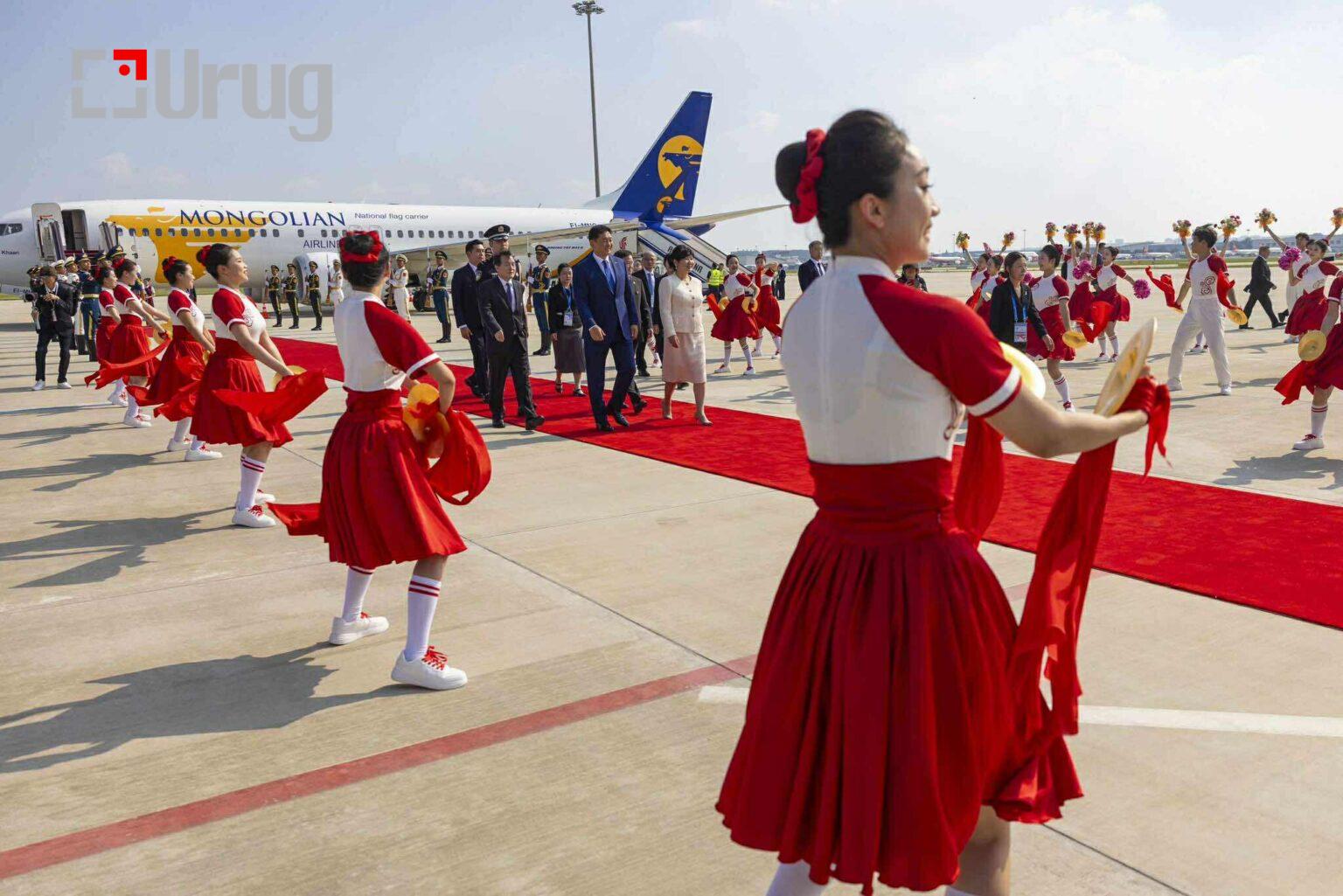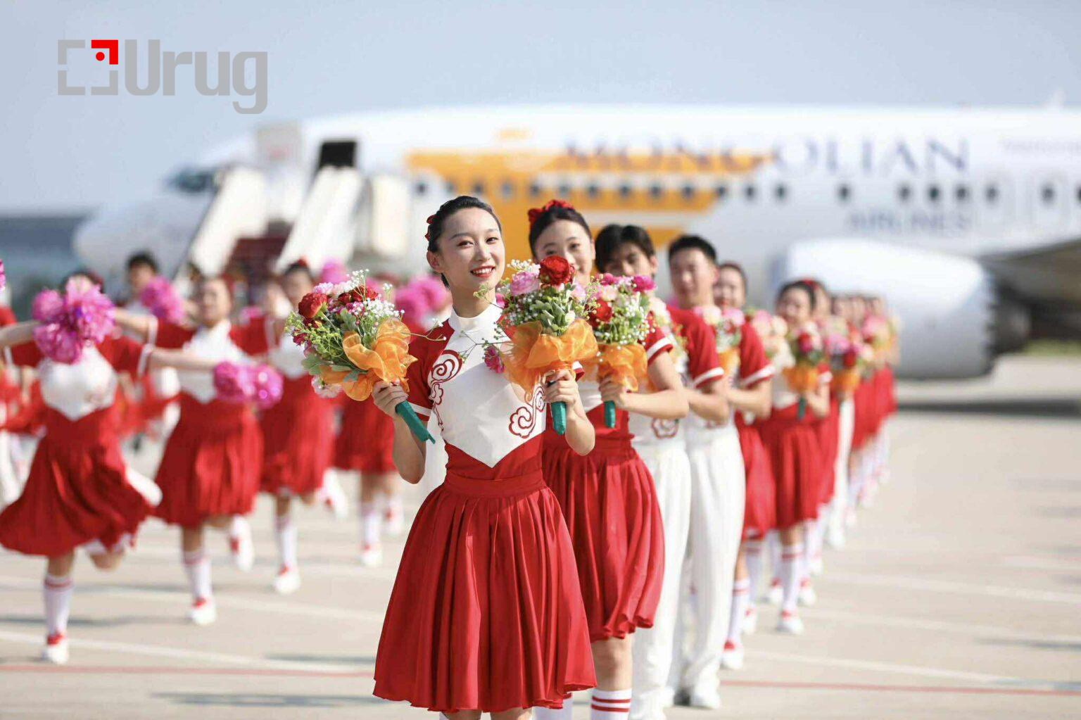 Монгол Улсын Ерөнхийлөгч У.Хүрэлсүх, гэргий Л.Болорцэцэг нарыг Тяньжин хотын “Биньхай” олон улсын нисэх онгоцны буудалд хүрэлцэн ирэхэд БНХАУ-ын Ардын банкны Ерөнхийлөгч Пан Гуншөн, Тяньжин хотын Улс төрийн зөвлөлийн дарга Ван Чансун, БНХАУ-аас Монгол Улсад суугаа Онц бөгөөд Бүрэн эрхт Элчин сайд Шэнь Миньжюань, Монгол Улсаас БНХАУ-д суугаа Онц бөгөөд Бүрэн эрхт Элчин сайд Н.Энхболд болон албаны бусад төлөөлөгчид угтав.