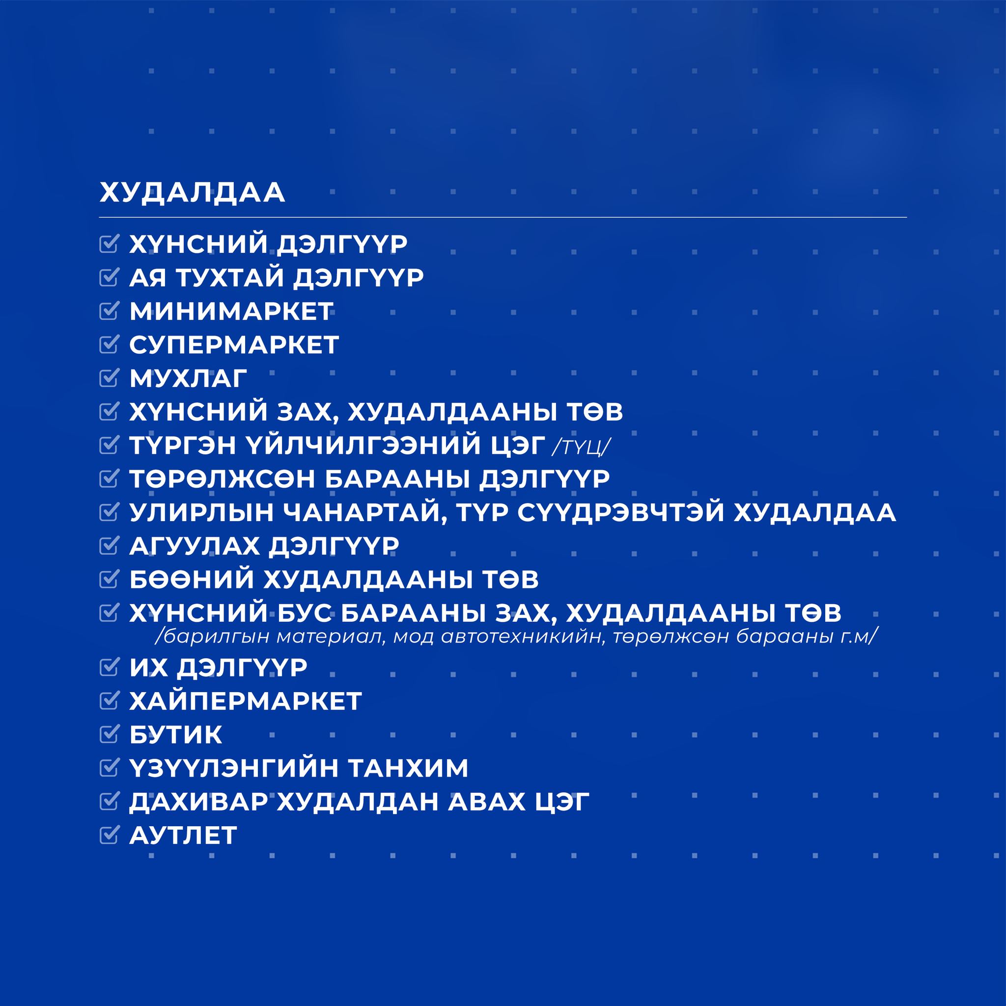 - Нийслэлийн нутаг дэвсгэрт худалдаа