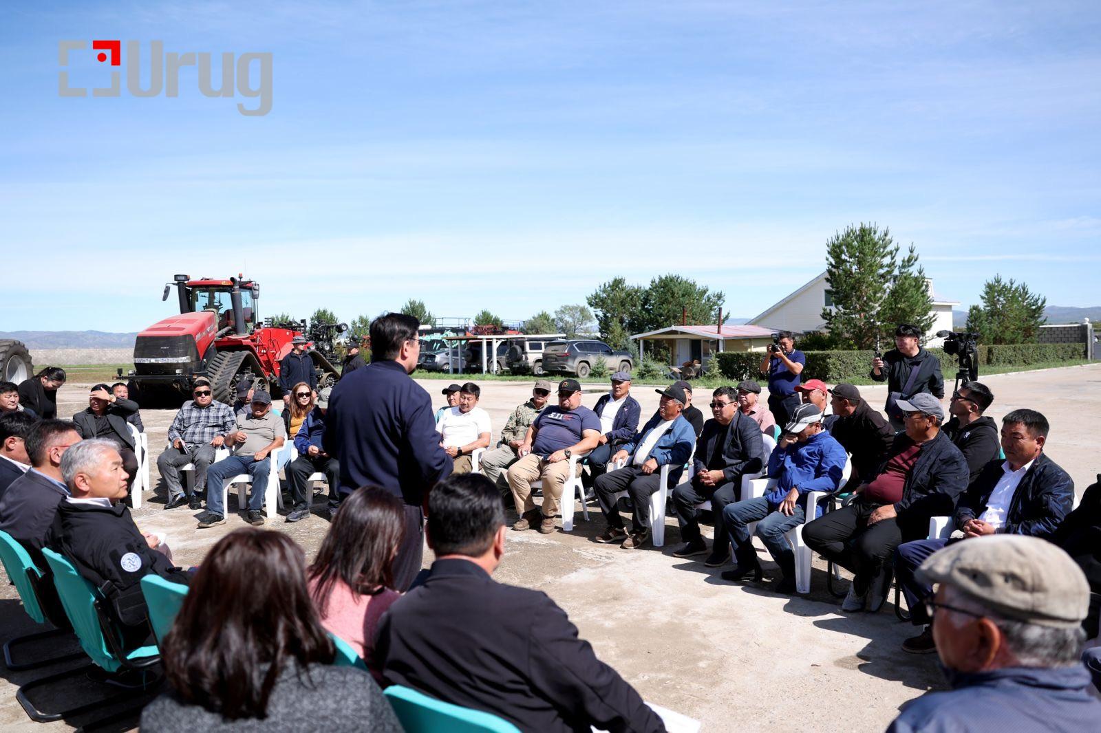 Ерөнхий сайд Г.Занданшатар Сэлэнгэ аймгийн Ерөө суманд ажиллаж, тариалан эрхлэгчдийн төлөөлөлтэй уулзлаа.