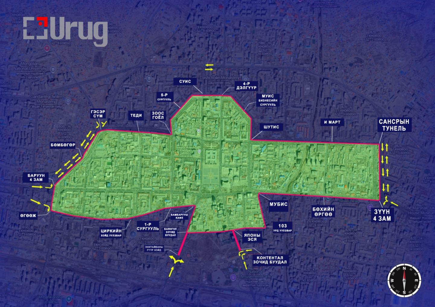 - Чингисийн өргөн чөлөөний Монголын хүүхдийн ордны уулзвараас Монгол шуудангийн уулзвар болон дотогш замуудыг хаана.