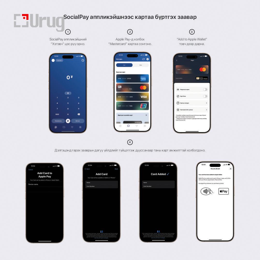 Харин Голомт банканд бүртгэлтэй харилцагчид Apple Pay-д Mastercard брэндийн картаа шинээр холбон анхны гүйлгээгээ хийгээд 20%-ийн буцаан олголт авах боломжтой.