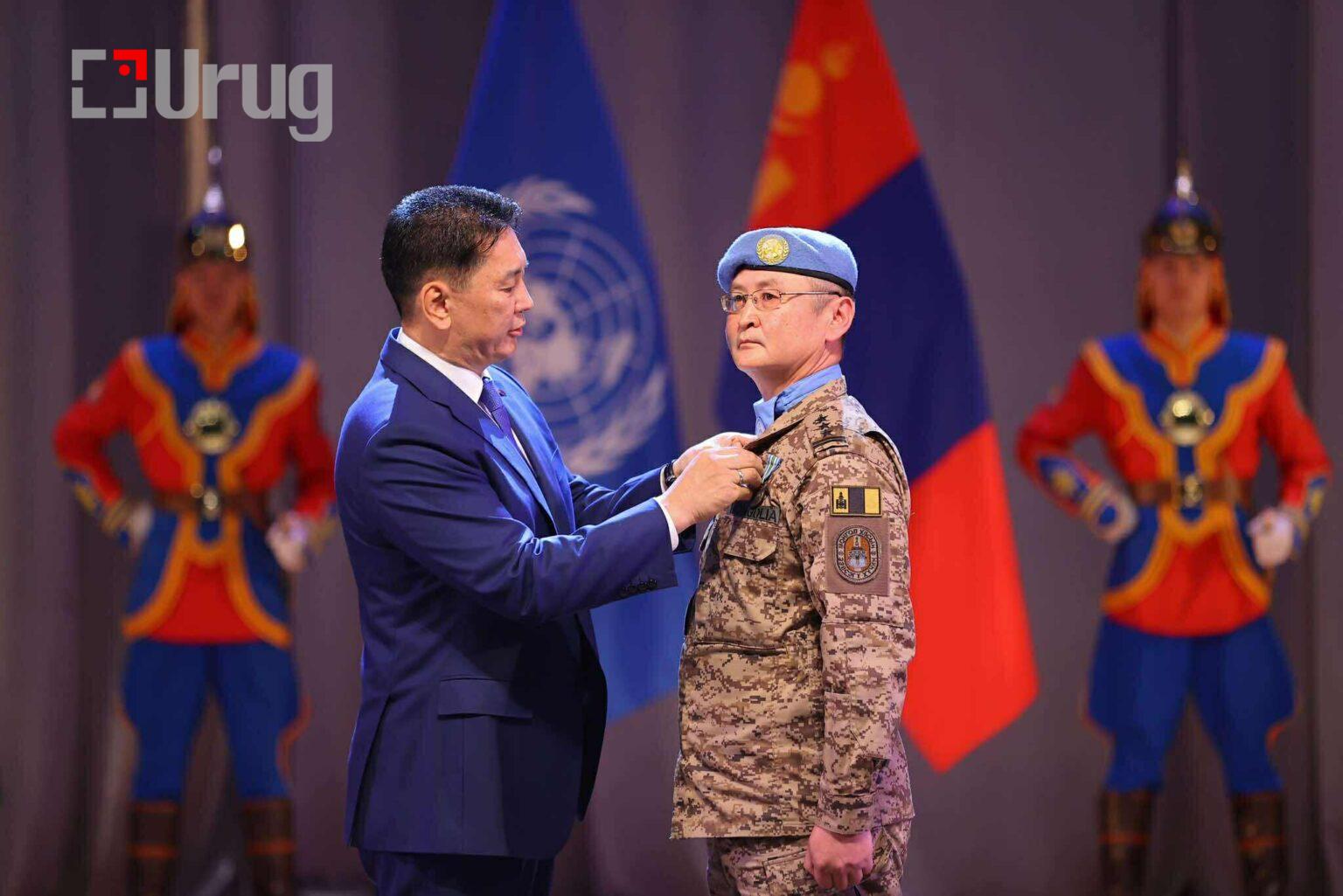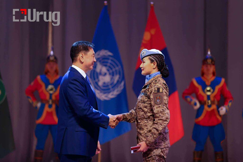 Монгол Улсын Ерөнхийлөгч У.Хүрэлсүх энхийг сахиулагчдад төрийн одон, медаль гардууллаа