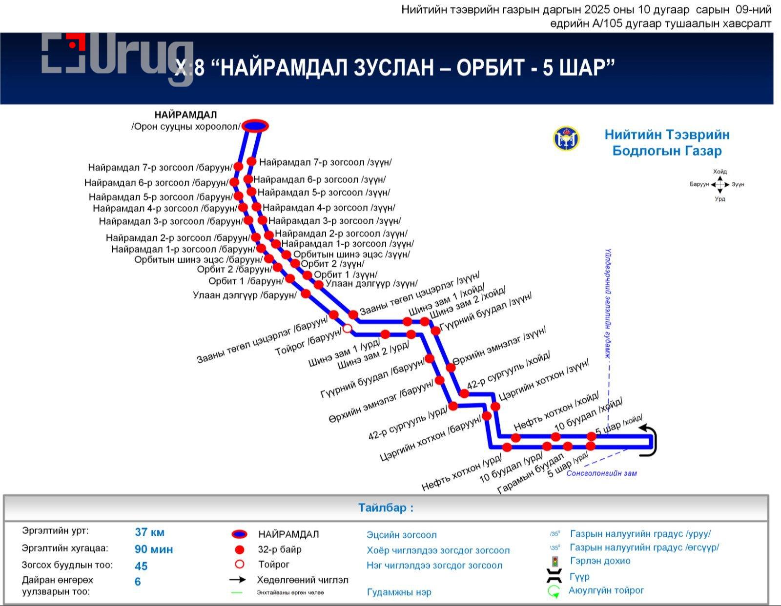 Х:8 чиглэлийн дээрх өөрчлөлтийг маргааш буюу аравдугаар сарын 11-ний өдрөөс эхлэн мөрдөх юм байна.