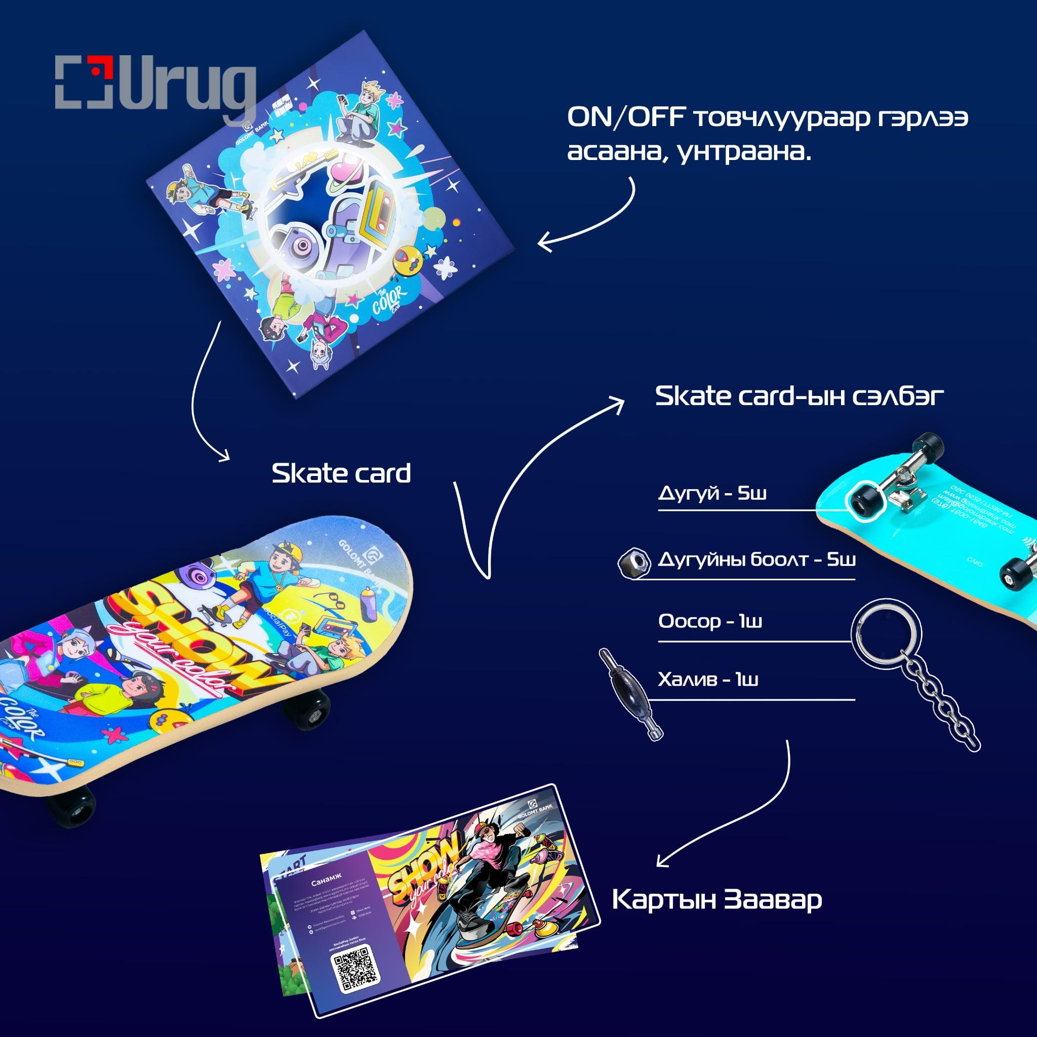 Skate card нь цөөн тоогоор зах зээлд нэвтэрсэн, limited edition бүтээгдэхүүн тул та өөрт хамгийн ойр байрлах Голомт банкны салбарт хандан амжиж картаа захиалаарай.
