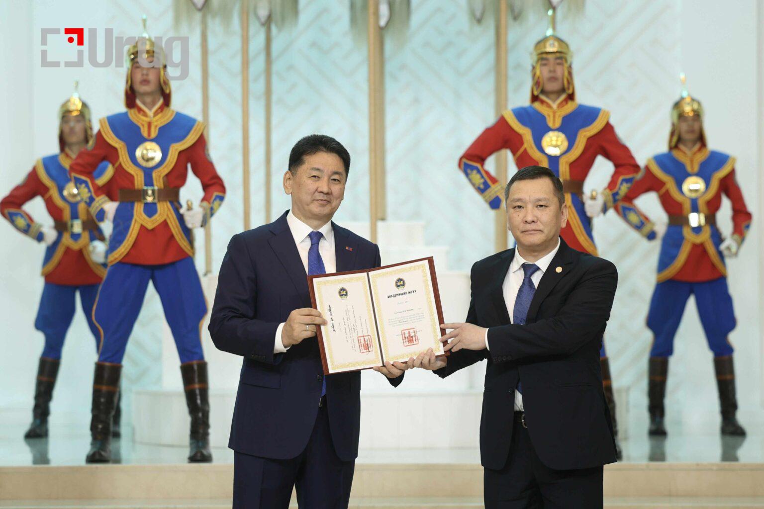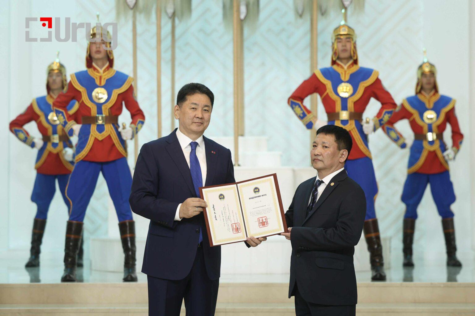 Монгол Улсын Ерөнхийлөгч Ухнаагийн Хүрэлсүх нэр бүхий эрдэмтэд Академич хэргэм хүртээлээ.