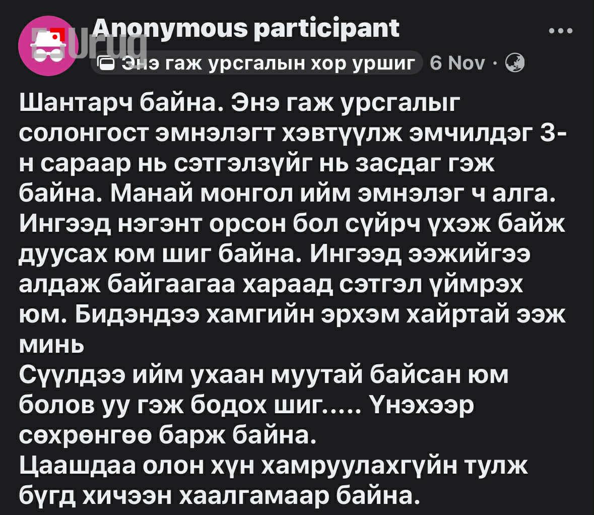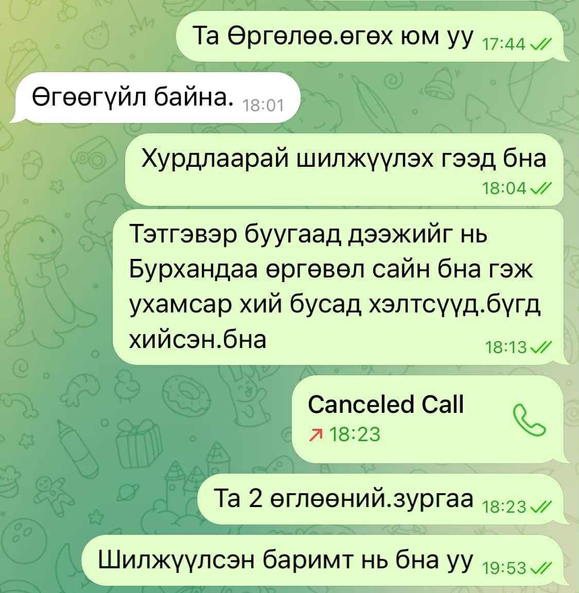 Охин маань эмнэлэгт хэвтээд би гадаадад ээжээс өөр харж эмнэлэгт хэвтэх хүн байхгүй байхад “чөлөө өгөхгүй” гээд бөөн юм болсон.