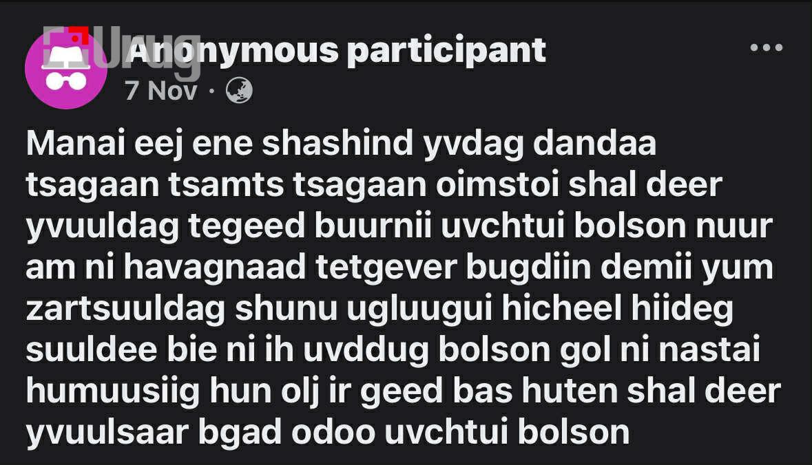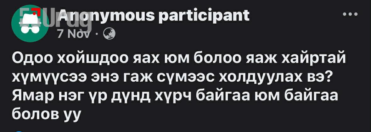 “Улсын үндэс суурь чинь гэр бүл мөн биз дээ. Гэрээ засаад төрөө зас гэдэг байтал энэ гаж урсгалын нөлөөгөөр салсан, сарнисан, тогтворгүй гэр бүлүүд олширсоор байна. Би салчихсан больчихсон гээд дуугай өнгөрмөөр байгаа ч бусдыгаа бодоод чадахгүй нь.
