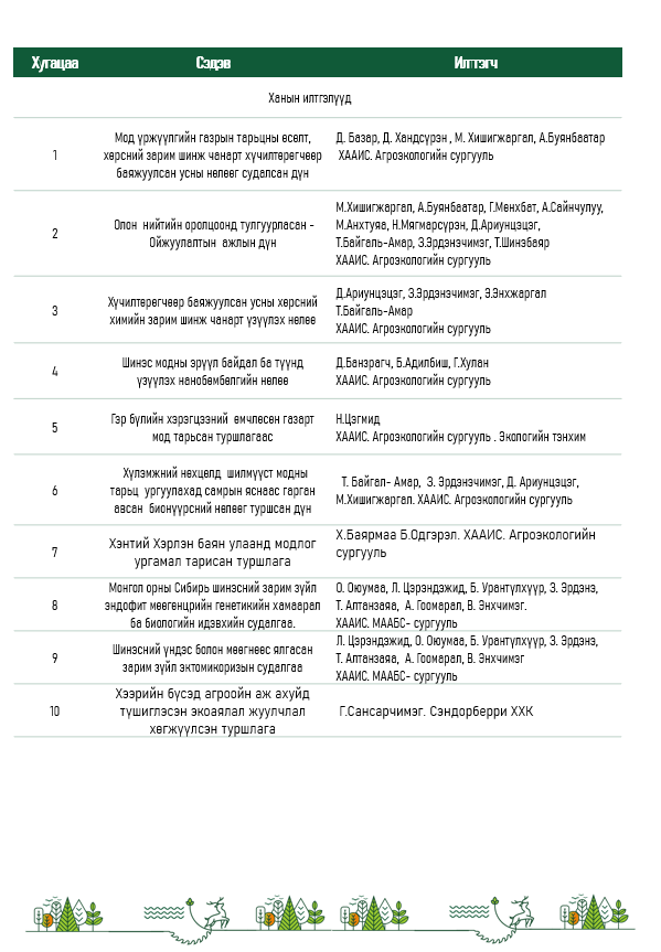 Эрдэм шинжилгээний хурлын хөтөлбөр: