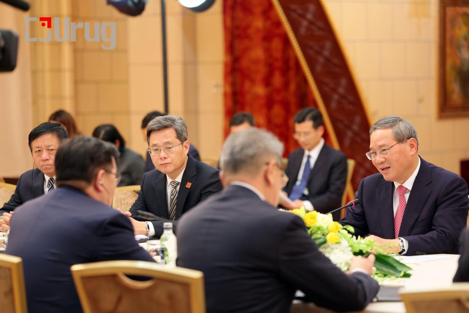 БНХАУ-ын Төрийн зөвлөлийн Ерөнхий сайд Ли Чян хоёр улсын харилцаа, хамтын ажиллагаа тогтвортой, урт хугацаанд урагшлан хөгжинө гэдэгт итгэлтэй буйгаа дурдаад Хятадын асар том зах зээл Монгол Улсад үргэлж нээлттэй талаар хэлэв. Уулзалтаар Монгол, Хятад, Орос гурван улсын төрийн тэргүүн нарын харилцан тохиролцсон Монгол Улсын газар нутгаар дамжуулан ОХУ-аас БНХАУ-д байгалийн хий нийлүүлэх хоолой барих төслийг урагшлуулахын чухлыг талууд онцлов.