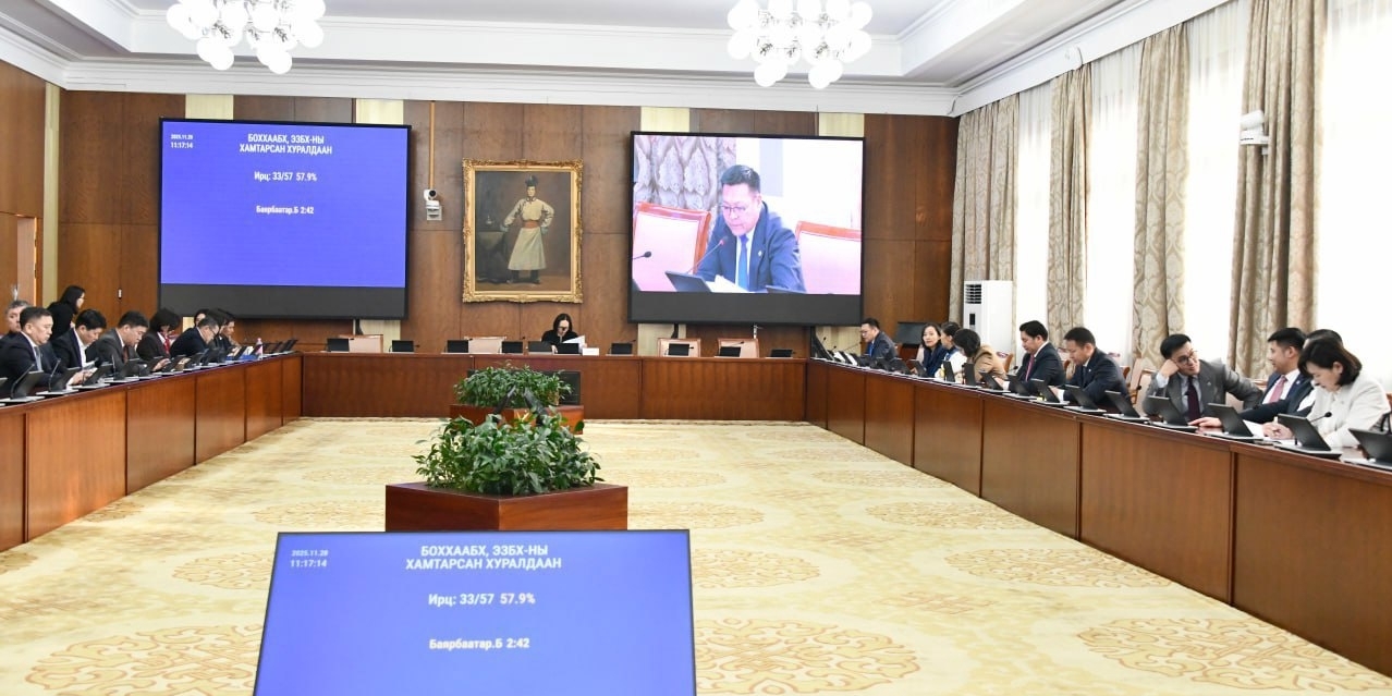 Улсын Их Хурлын Байгаль орчин, хүнс, хөдөө аж ахуйн болон Эдийн засгийн байнгын хороо өнөөдөр (2025.11.20) хамтарсан хуралдаж, “Халзан бүрэгтэй”-н орд газрын ашиглалт, байгаль орчинд үзүүлэх сөрөг нөлөөлөл, эрсдэлийг нарийвчлан судлах сэдвээр зохион байгуулсан ерөнхий хяналтын сонсголын тайланг сонслоо. Хуралдаан 29 гишүүн хүрэлцэн ирснээр 11 цаг 12 минутад 50.9 хувийн ирцтэйгээр эхлэв. Улсын Их Хурлын гишүүн Б.Жаргалан тус хамтарсан хуралдааныг даргалсан юм.