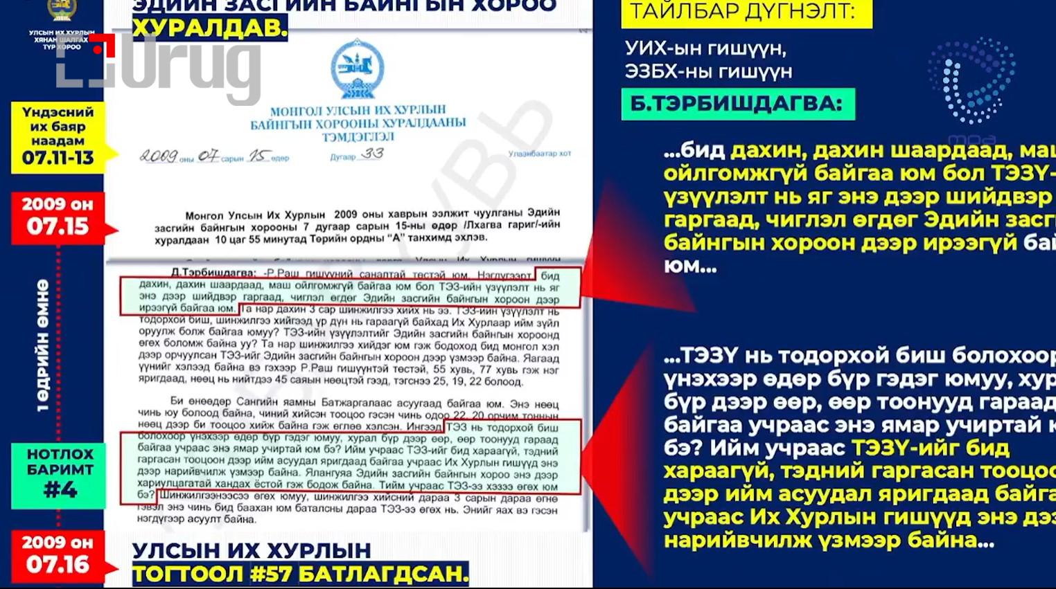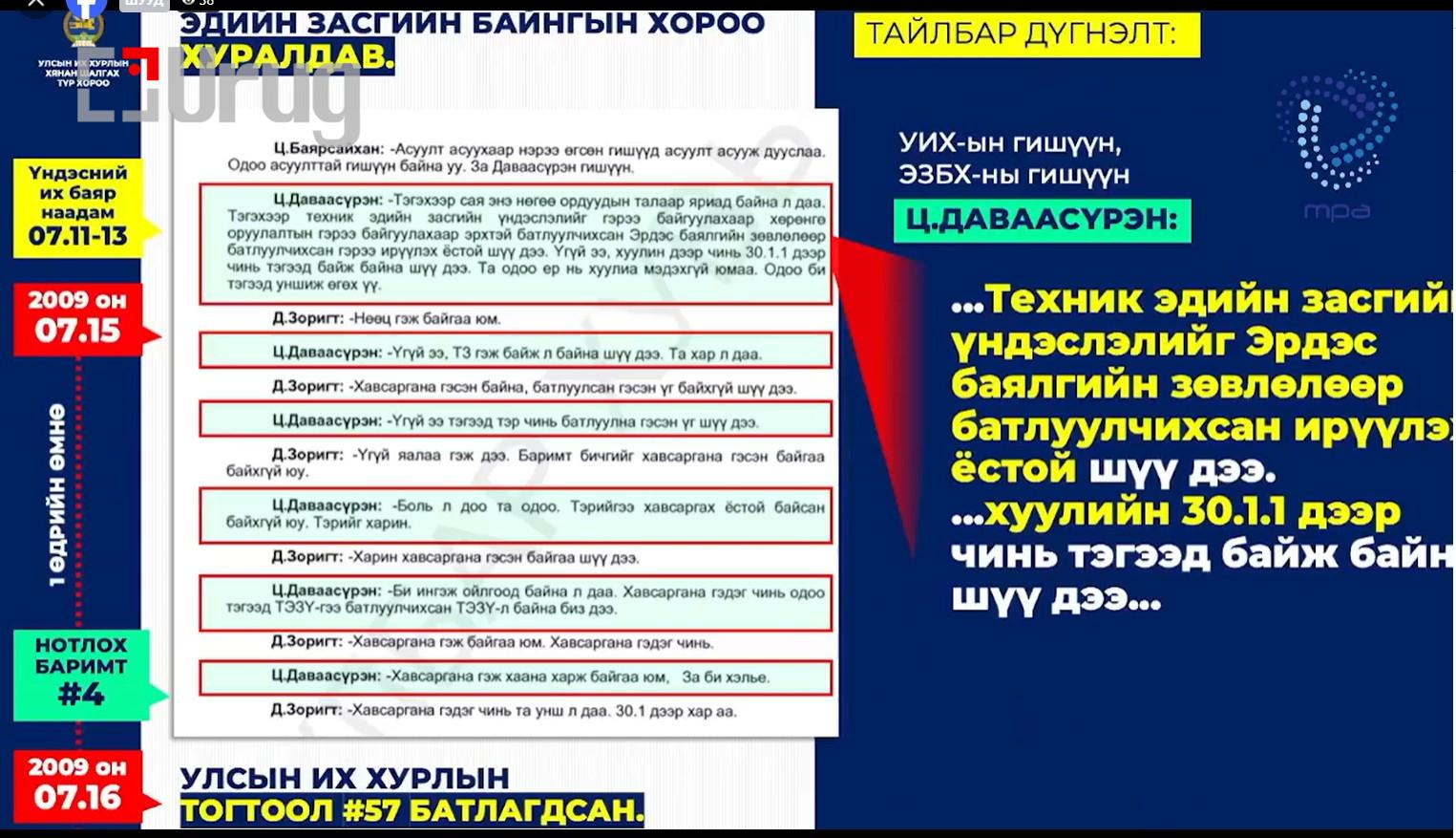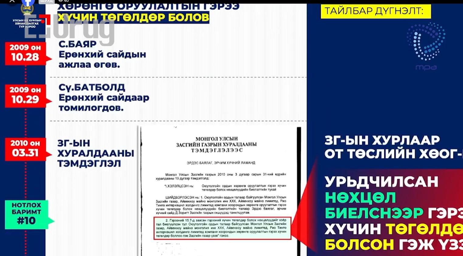 Тэр үед ТЭЗҮ батлагдаагүй асуудлыг “буруу” гэж би хэлж байсан. 2018 онд нөхөн шалгахад ТЭЗҮ нь батлагдаагүй, сүүлд нөхсөн нь тодорхой болсон. Надад баримт байна. С.Баярцогт “чемодан баримт бий” гэсэн. Надад 32 хавтас бодит баримт бий.