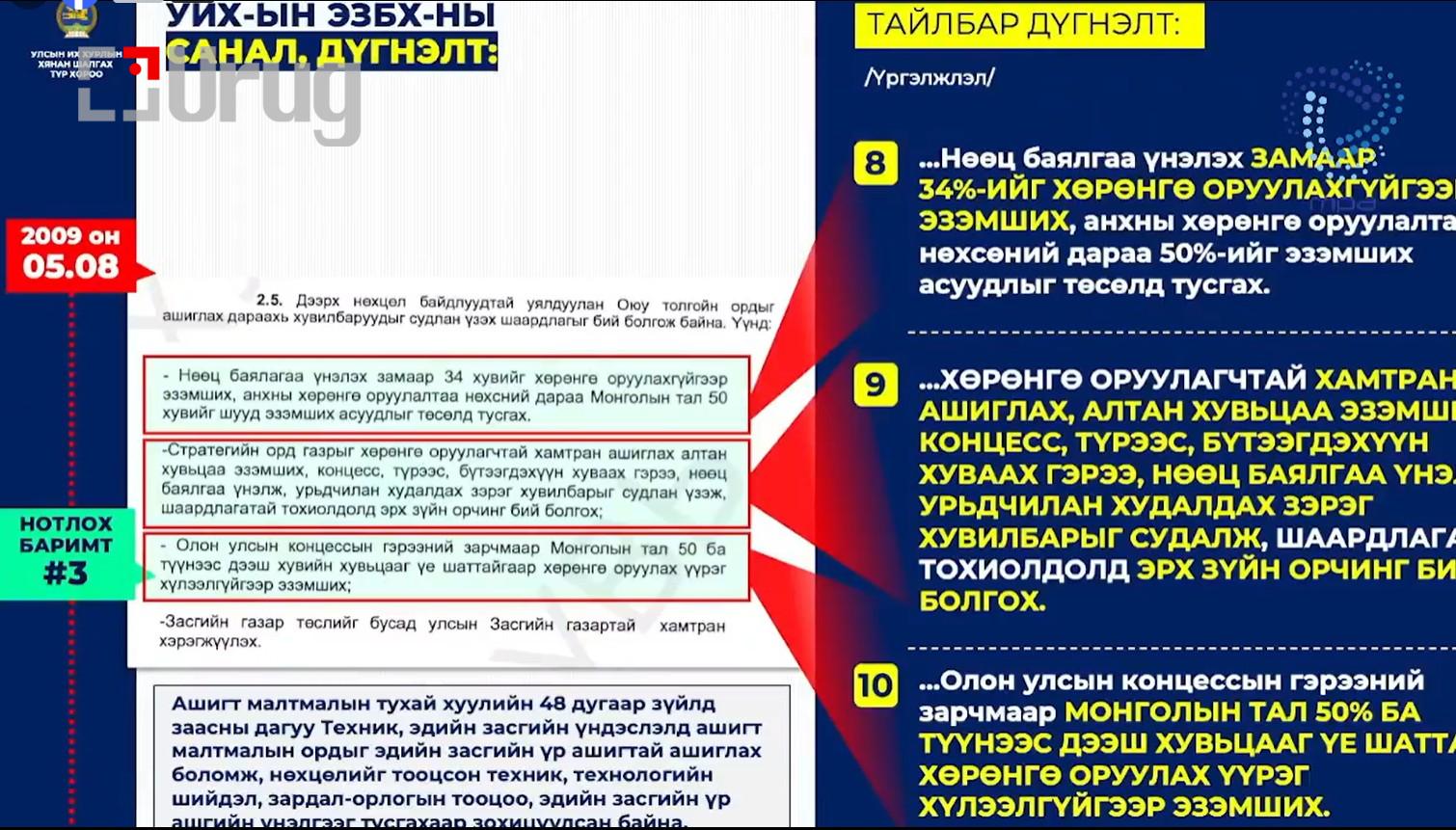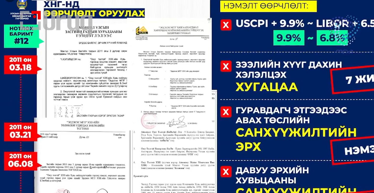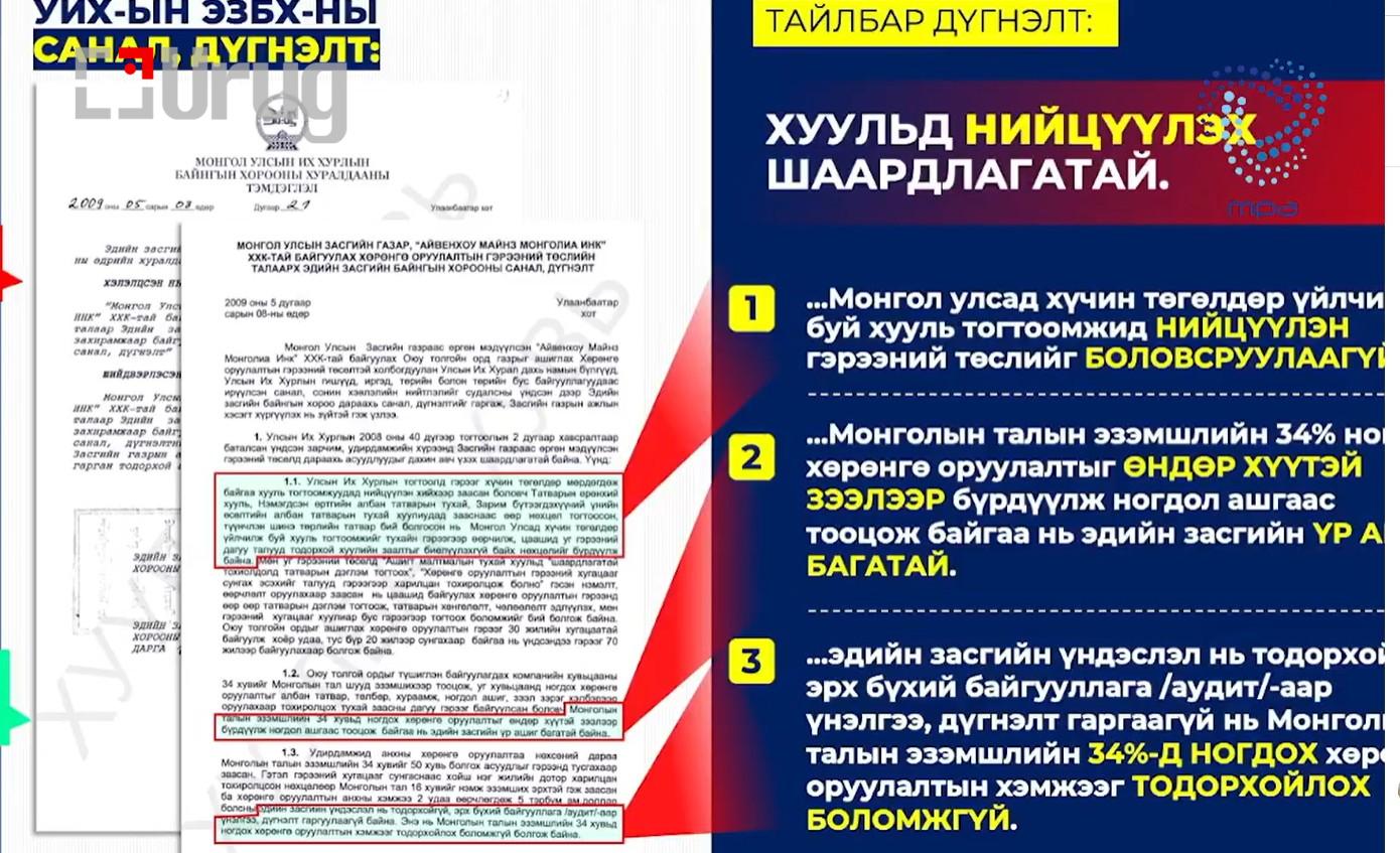 Мордохын хазгай гэдэг шиг энэ гэрээ анхнаасаа хууль зөрчиж, стандарт бус Засгийн газар байгуулж байгаад энэ гэрээг байгуулсан. Үндсэн хуулийг зөрчсөн. Бүх зүйл буруу явсны нэг жишээ нь Оюу Толгой төсөл.