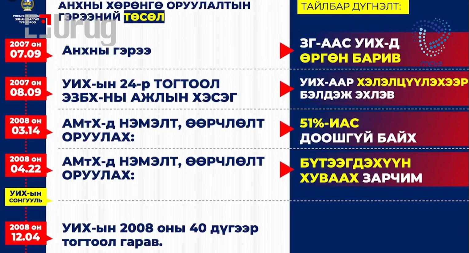 Яагаад гэвэл та нийт хөрөнгө оруулалтын талаар бага зэрэг ташаа ойлголттой байна. Одоо яригдаад байгаа дивиденд буюу ноогдол ашиг, хүүгийн гол асуудал нь анхны хөрөнгө оруулалттай холбоотой. Өөрөөр хэлбэл, хүүтэй холбоотой асуудал голд байна” гэсэн бичлэг хавсаргасан байв.