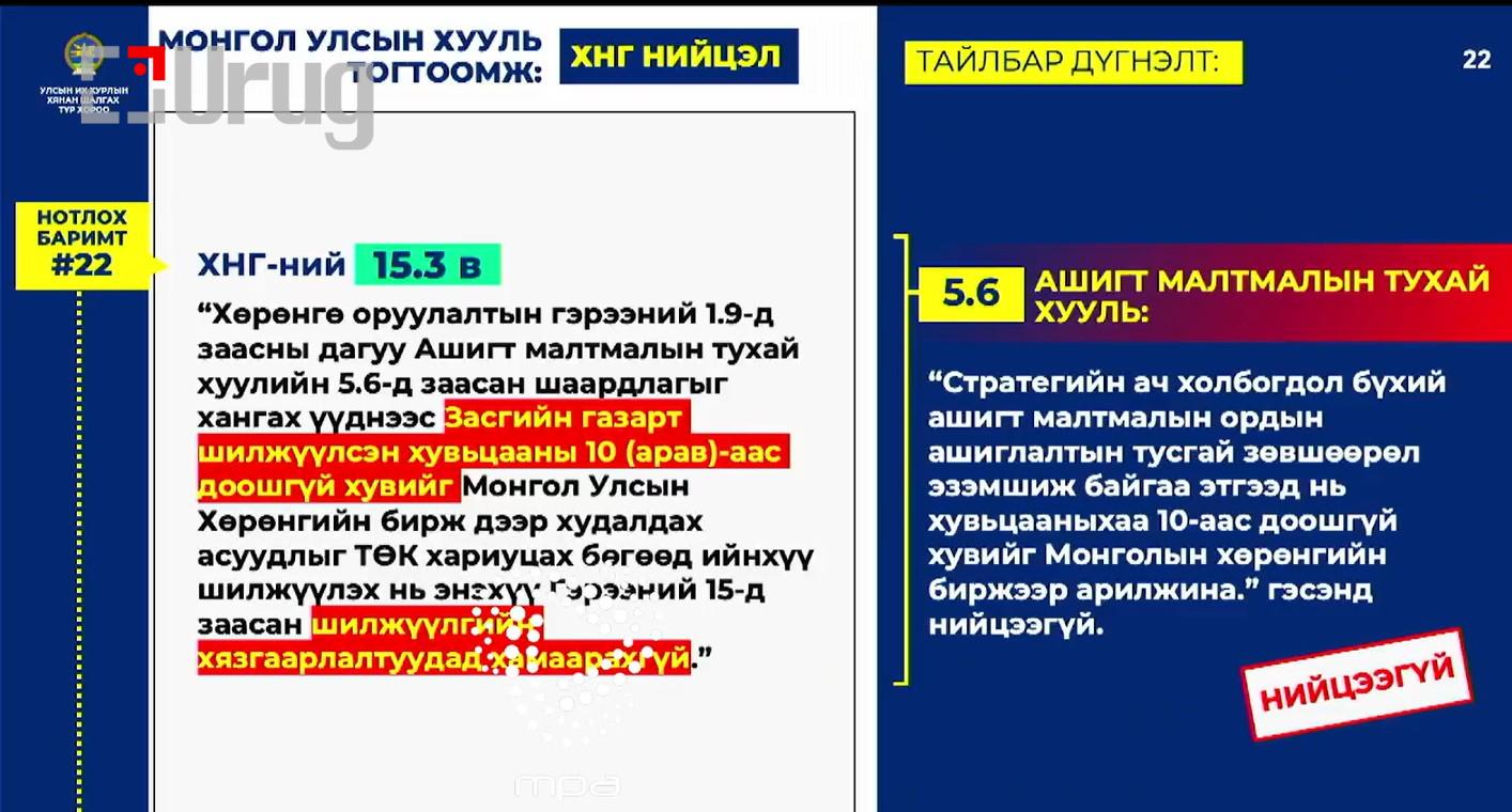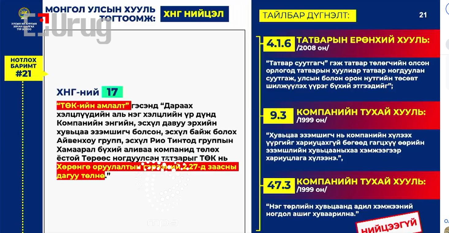 Үр өгөөжийн асуудлаа баталгаажуулаагүй нь мөн нэг том алдаа. Үүнийг хуульчилж, хоёр тал гарын үсэг зурсан гэрээнд заавал тусгаж, хоёр талын үүрэг болгох ёстой байлаа. Энэ чиглэлд бид алдсан байна.