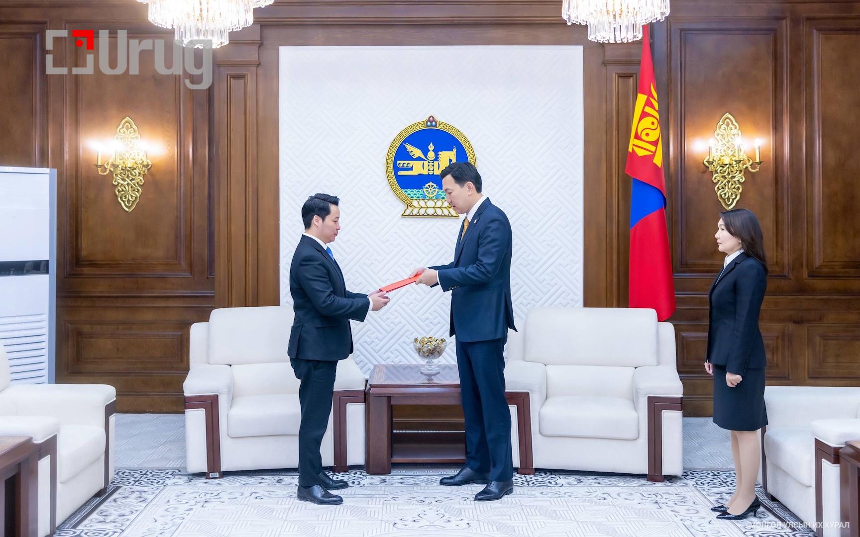 Монгол Улсын Их Хурлын дарга Н.Учралд өнөөдөр (2025.12.15)Элчин сайд нарыг эгүүлэн татах, томилох талаарх Монгол Улсын Ерөнхийлөгчийн зөвшилцөх саналыг Ерөнхийлөгчийн Тамгын газрын дарга А.Үйлстөгөлдөр өргөн мэдүүллээ.