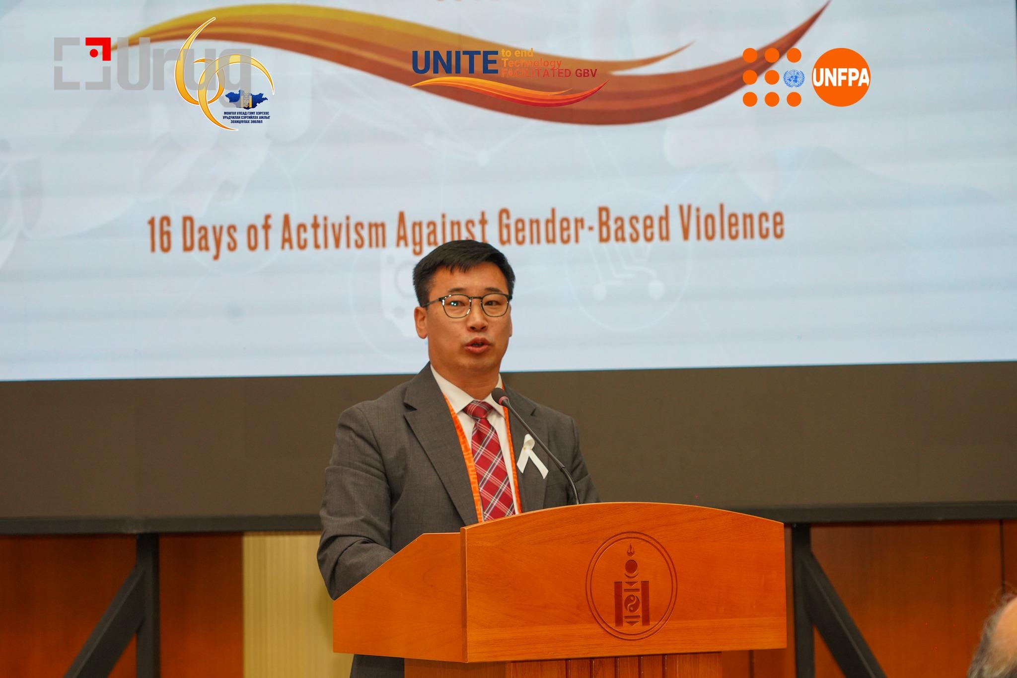 .Монгол Улсад Гэмт хэргээс урьдчилан сэргийлэх ажлыг зохицуулах зөвлөлийн Ажлын алба, НҮБ-ын Хүн амын сантай хамтран Жендэрт суурилсан хүчирхийлэлтэй тэмцэх 16 хоногийн аяныг улсын хэмжээнд “Технологи ашиглан үйлдэгдэж буй жендэрт суурилсан хүчирхийлэлтэй тэмцье — НЭГДЭЦГЭЭЕ!” уриан дор өнөөдөр (2025.11.25) албан ёсоор эхлүүллээ.