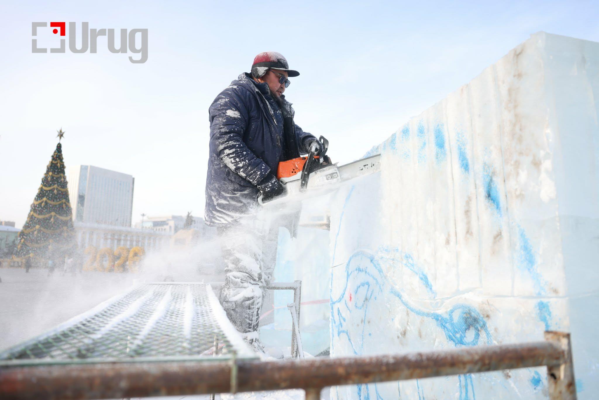 Шинэ жилийн баярыг тохиолдуулан төв талбайд мөсөн хотхон урлаж байна. Өнөөдрийн байдлаар ажлын явц 50 хувьтай үргэлжилж байгаа бөгөөд энэ сарын 25-нд бүрэн дуусгах ажээ.
