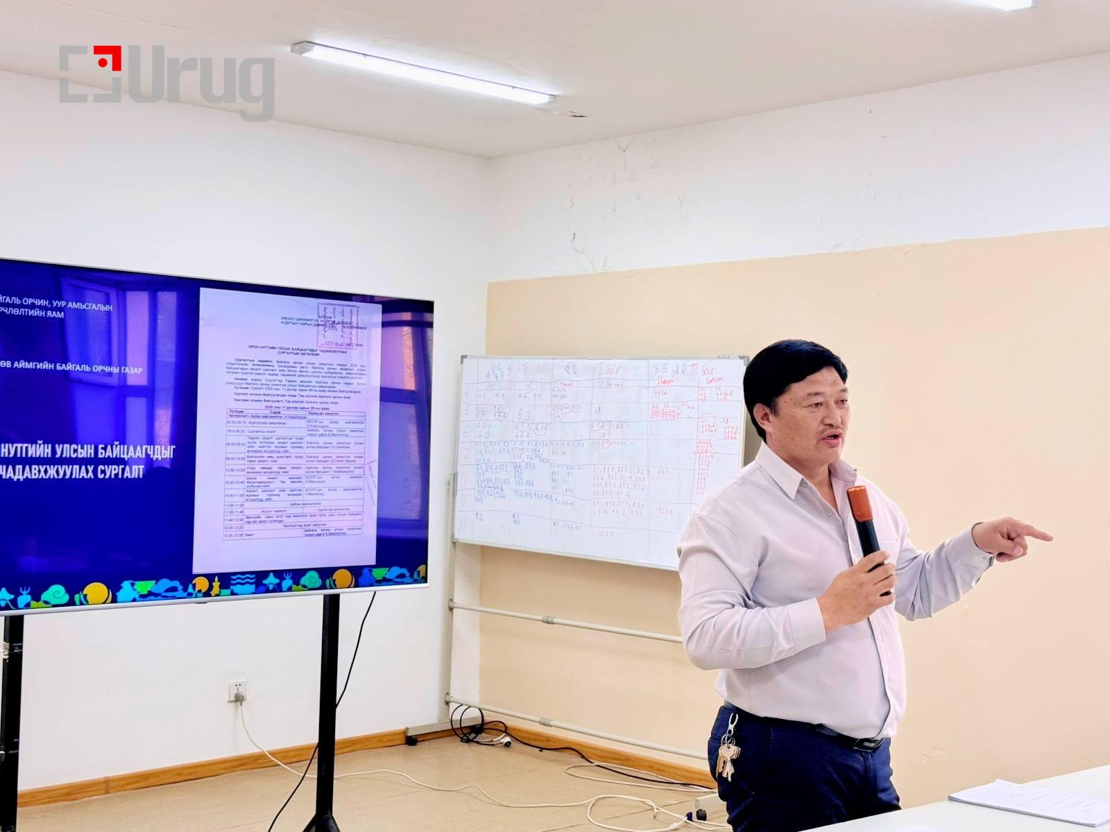 Тус сургалтад Төв аймгийн Байгаль орчны газрын болон сумдын улсын байцаагчийн эрх авсан мэргэжилтэн нийт 22 албан хаагчид оролцов.