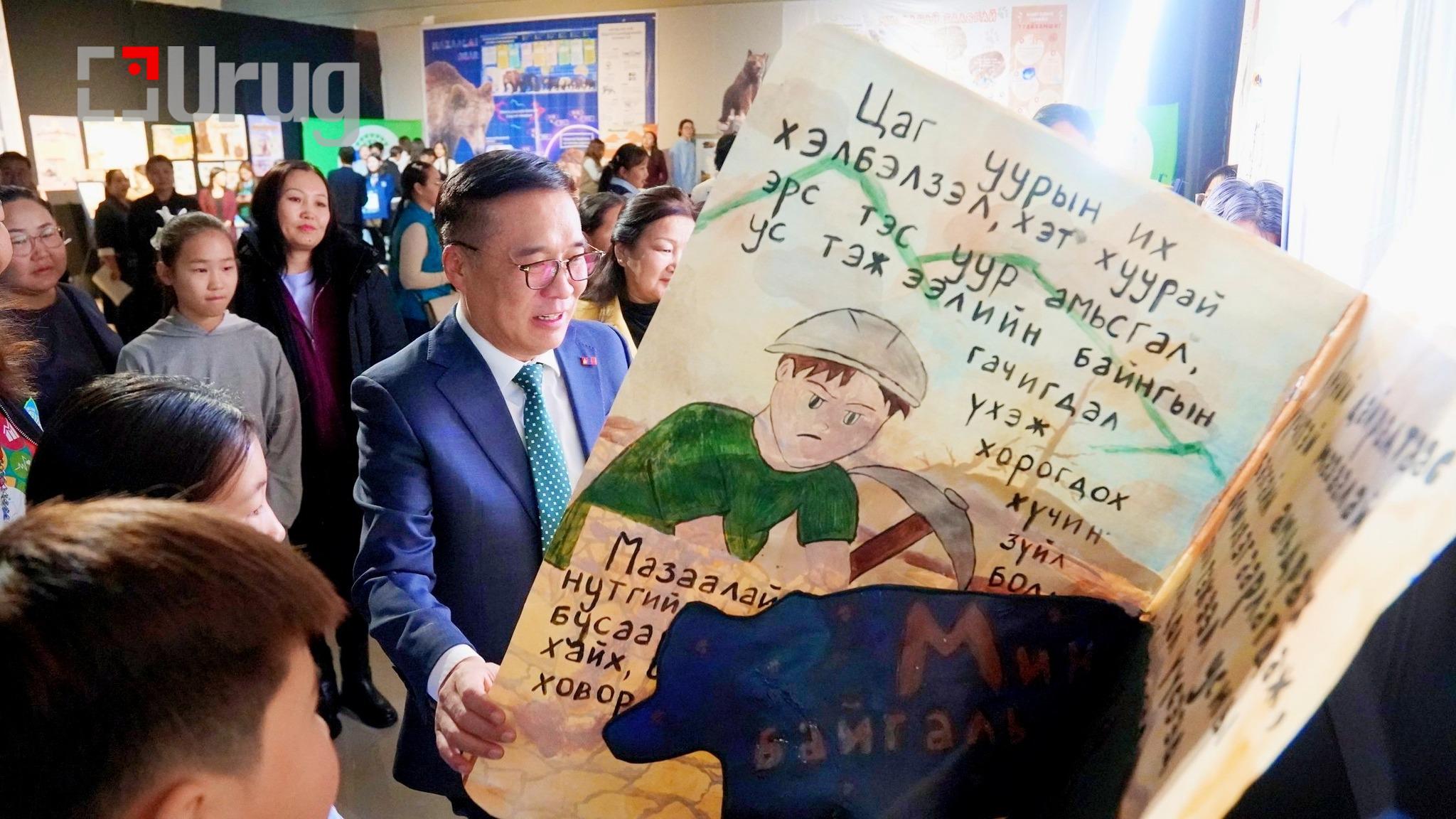 “Үндэсний бахархалт амьтан мазаалай баавгайг таниулах” хөтөлбөрийн хаалтын арга хэмжээ өнөөдөр /2025.11.14/боллоо. Арга хэмжээний нээлтэд Байгаль орчин, уур амьсгалын өөрчлөлтийн сайд Б.Батбаатар оролцож, Мазаалай баавгай бол Монголын биологийн олон янз байдлын бэлгэдэл бөгөөд түүнийг хамгаалах үйлсэд хүүхэд бүрийн оролцоо чухал гэдгийг онцлов.