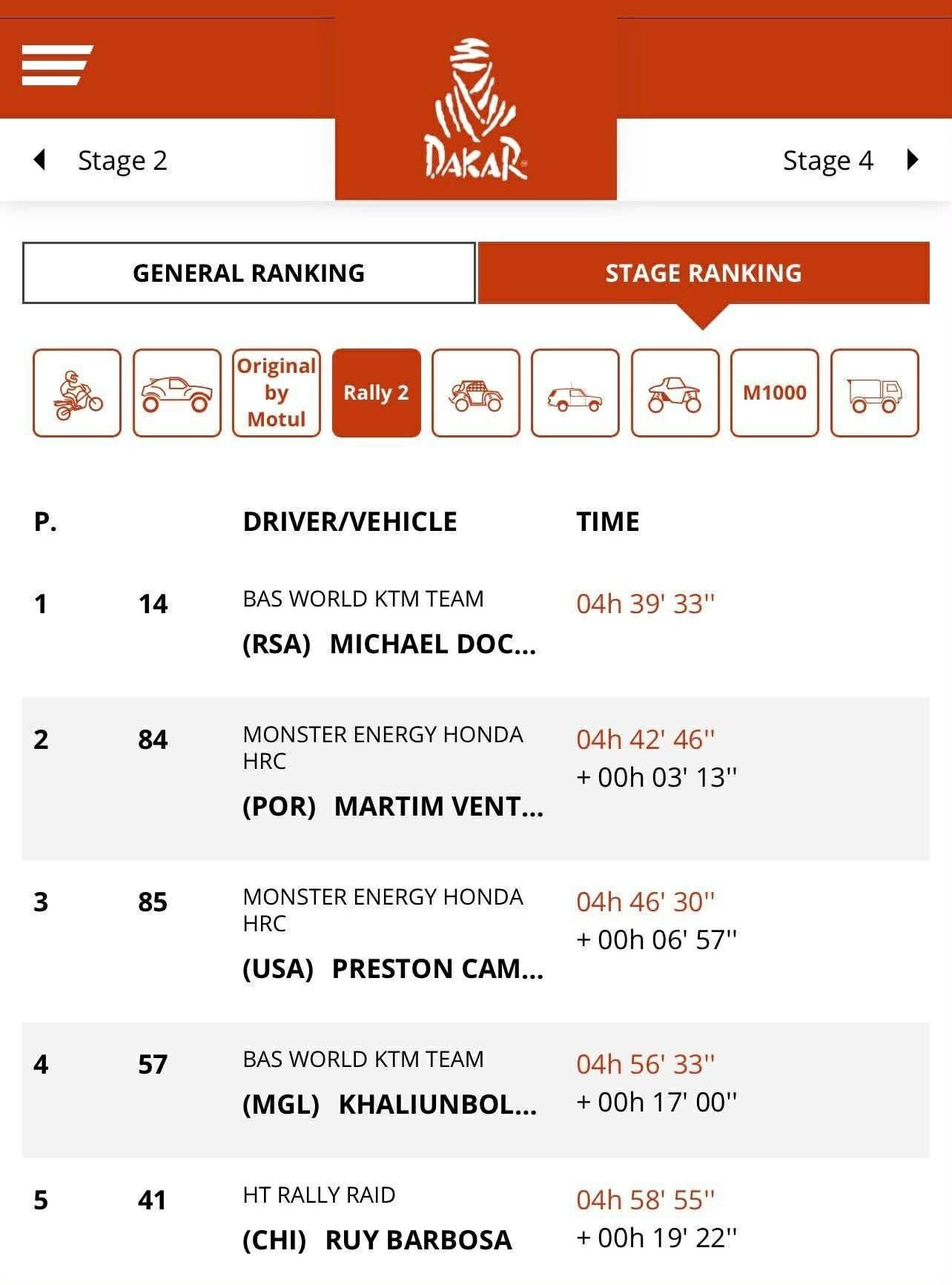 Өнөөдөр дөрөв дэх гараа марафон байх юм. Уг гараа нь тухайн өдрөө бариандаа ороод механикийн тусламж авахгүй тэндээ хоноглоод дараагийн өдрийн гараандаа шууд гардгаараа онцлогтой. Өөрөөр хэлбэл, тухайн тамирчин мотоциклоо гамнаж эвдрэл гаргалгүй хоёр өдөр уралдана гэсэн үг. Өнөөдрийн гарааны нийт зам 530 км. Үүнээс уралдааны цаг тооцох нь 452 км. Тэгвэл уралдааны замын 56 хувь нь элс, 30 хувь хайрга, шороо, 14 хувь чулуу, хадархаг байх юм.