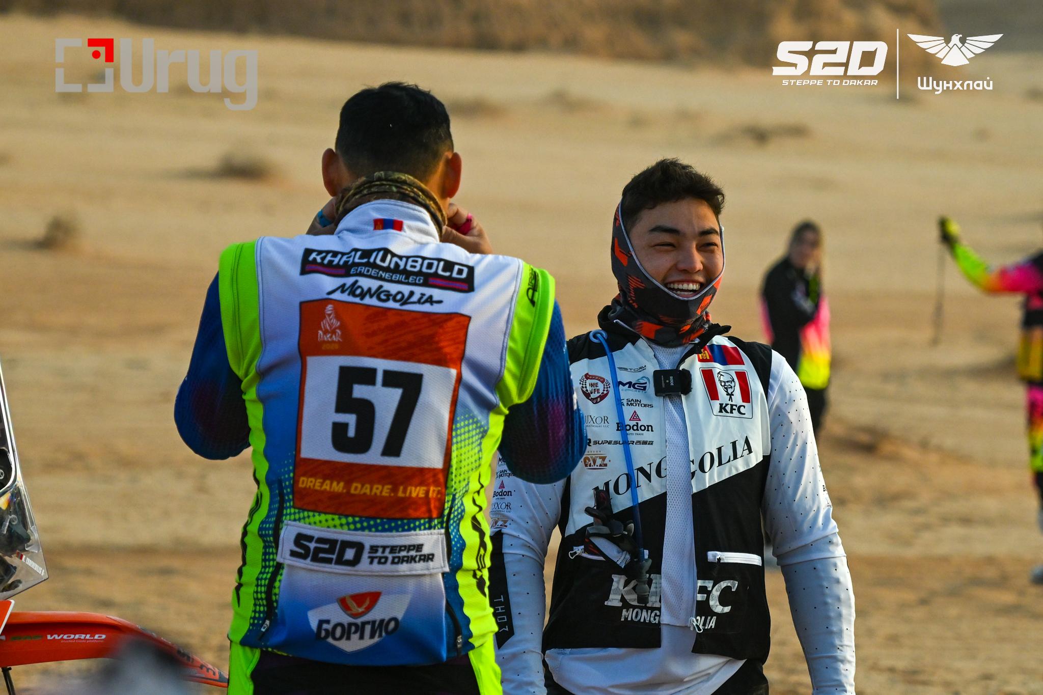 Тав дахь гараанд манай тамирчдаас гавьяат тамирчин Э.Халиунболд нийлбэр дүнгээр 11, “Ралли-2” ангилалдаа тавдугаар байр эзлэв. “Тал нутгаас Дакарт” төслийн тамирчин Э.Халиунболд нийт замаа 4 цаг 23 минут 23 секундэд барианд орсон байна. Тэрбээр барианд орсны дараа “Дажгүй яваад ирлээ. Сүүлийн 50 км-т нэг унасан. Дугуйны асуудалтай хүн их байв. Бага зэрэг язарсаныг эс тооцвол харьцангуй сайн байлаа. Миний хувьд дугуйгаа нэлээд гамналаа. Эхний өдөр унаагүй болохоор бие өвдөлтгүй аятайхан өнгөрүүлсэн шүү. Гар хавантай байгааг эс тооцвол бие маш сайн байна” гэв.
