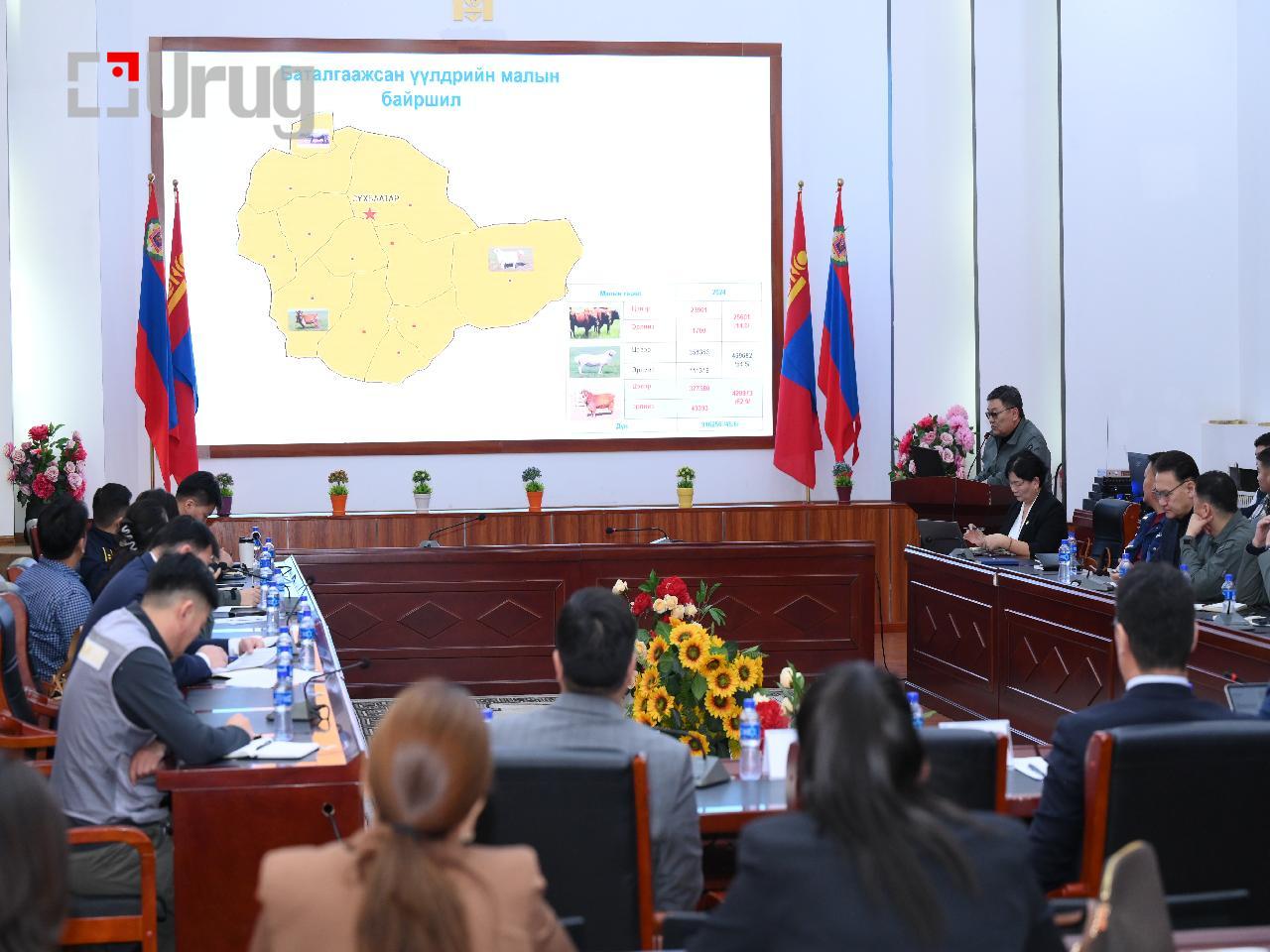 Хуралдаанд Аймгийн Хүнс, хөдөө аж ахуйн газар, Мал эмнэлгийн газраас цаг үеийн асуудлаар мэдээлэл өгөв. Өнгөрсөн хугацаанд олон улсын төсөл хөтөлбөр, орон нутгийн түншлэлээр Баяндэлгэрийн улаан үүлдрийн ухнын халуун үрээр 17 малчин өрхийн 605 ямаанд хээлтүүлэг хийж, гүн хөлдөөсөн үрээр 130 үнээнд зохиомол хээлтүүлэг хийх ажил зохион байгуулж, цаашид Түмэнцогт сумын үржлийн үхрийн цөм сүргийн үйл ажиллагааг дэмжих, өндөр ашиг шимт малын үр, хөврөл үр шилжүүлэн суулгах төв байгуулахаар зорин ажиллаж байгаа аж. Мөн “Нутгийн сүү” сүүний үйлдвэр байгуулан 2025 оны арваннэгдүгээр сараас үйл ажиллагаа явуулж эхэлжээ.