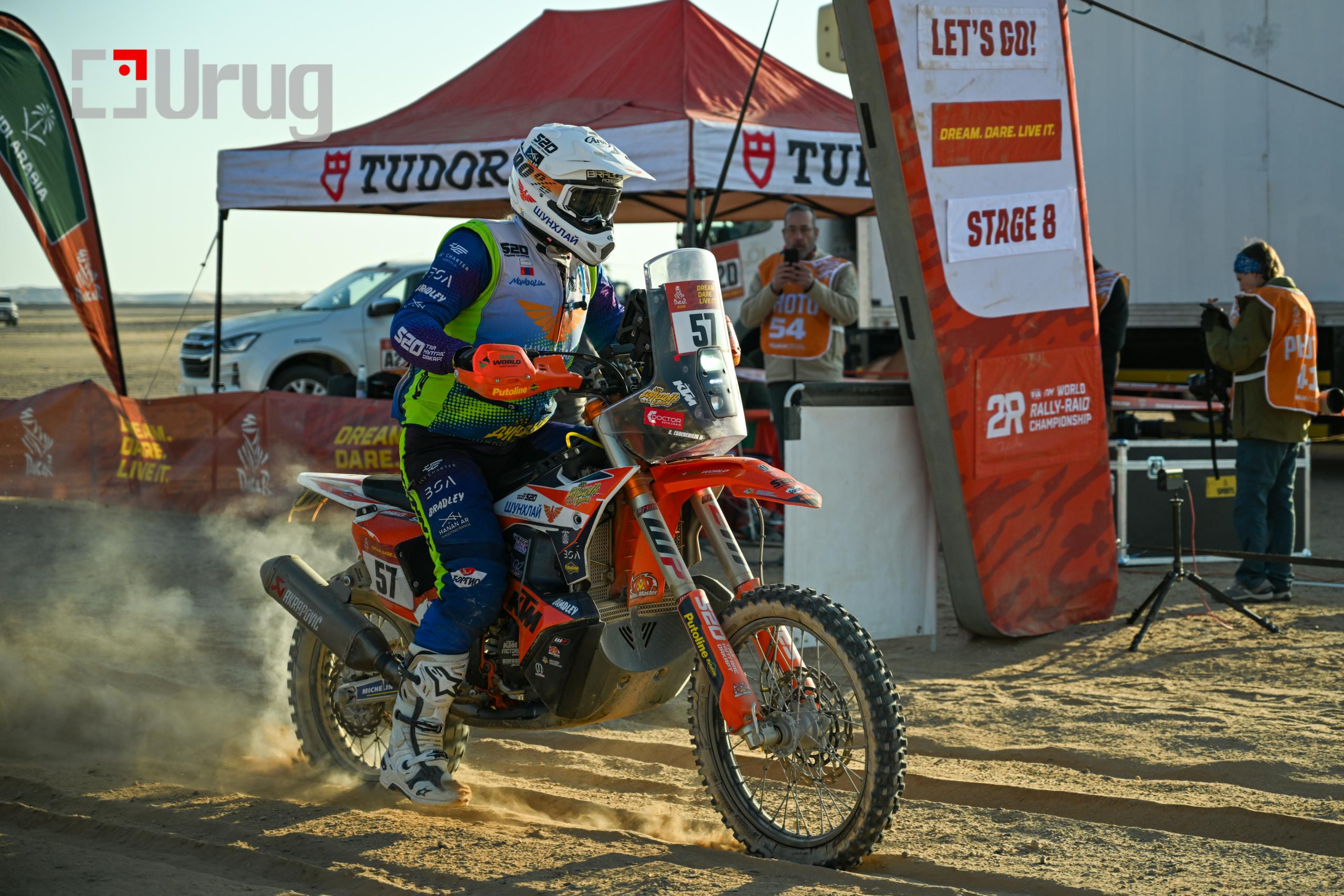 Энэ удаагийн Дакар Раллигийн хамгийн урт өдөр болох 483 км замтай ЭТАП-8 амжилттай өндөрлөлөө. Элсэн манхан тал ихтэй тус зам цаг агаарын таагүй нөхцөлд буюу шуургатай байж тамирчдын жинхэнэ шандасыг шалгалаа. Үзэгдэх орчин хязгаарлагдмал өдрийн турш шуурсан ч тамирчид энэ бол “Дакар Ралли” юм. “Тал Нутгаас Дакарт” төслийн тамирчин МУГТамирчин Э.Халиунболд 5 цаг 16 минут 19 секундэд цаг тооцох замаа туулж нийт тамирчдаас 26-р байрт, Ралли 2 ангилалдаа 16-рт бичигдсэн.