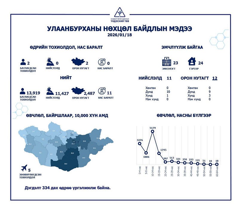 2026 оны нэгдүгээр сарын 18-ны байдлаар Улаанбурхан өвчний нөхцөл байдлын мэдээллийг хүргэж байна.