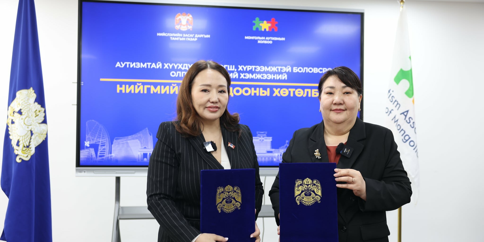 Энэ хүрээнд нийслэлийн Санхүү, эдийн засаг, хөгжлийн бүтээн байгуулалтыг эрчимжүүлэх төсөл, хөтөлбөрийн зохицуулагч Л.Хосбаяр Монголын аутизмын холбооны НҮТББ-ын зөвлөх Л.Алтангэрэл нар хамтын ажиллагааны санамж бичиг байгууллаа.
