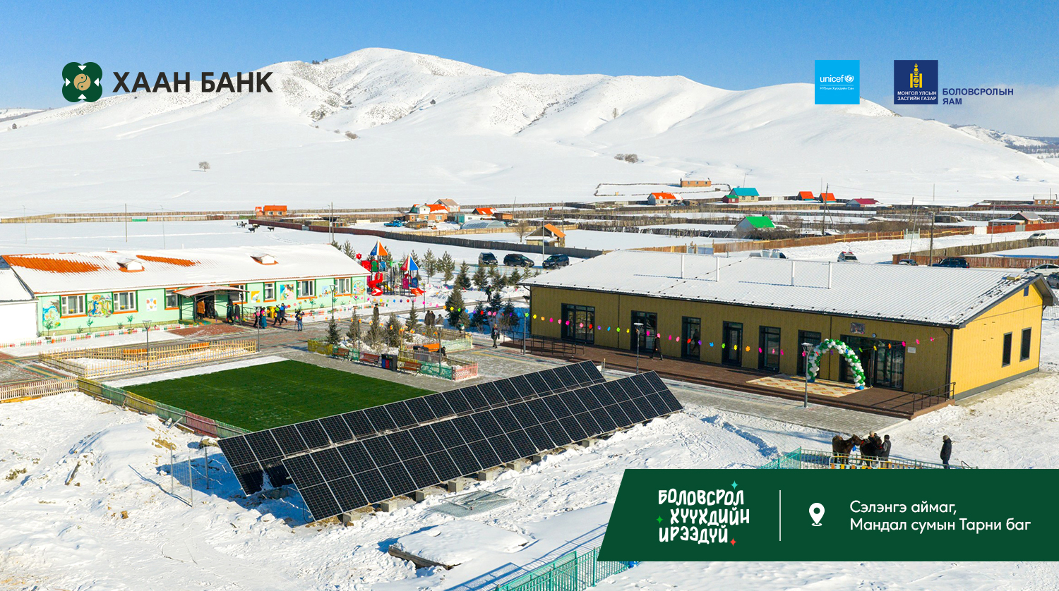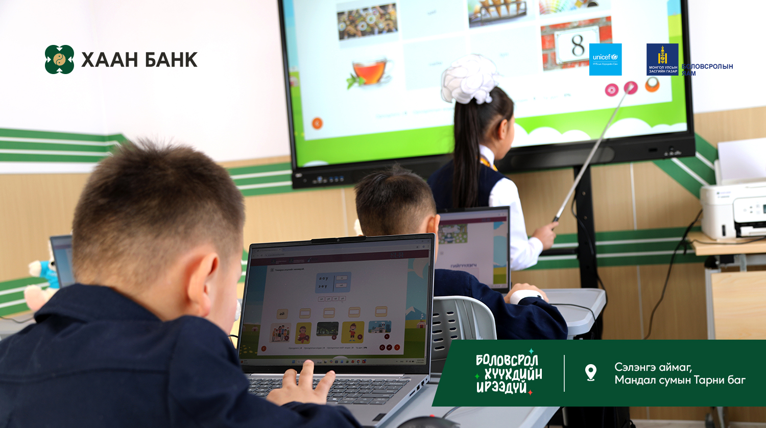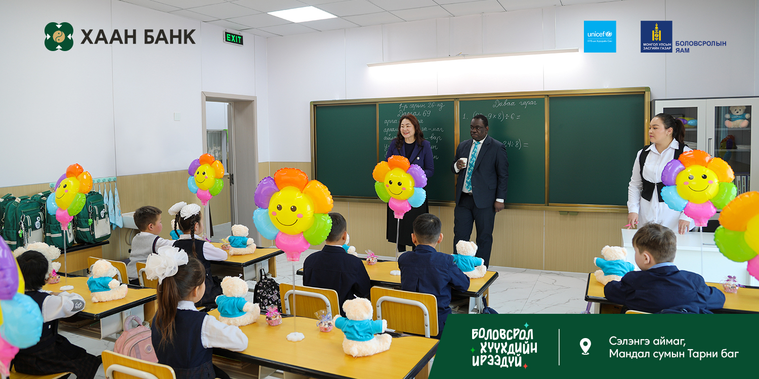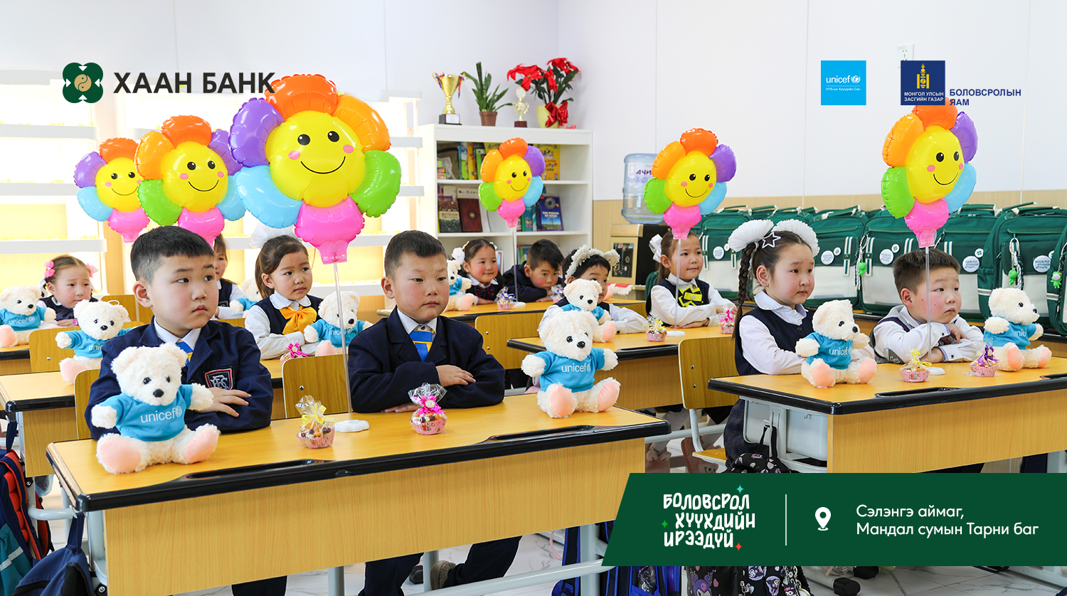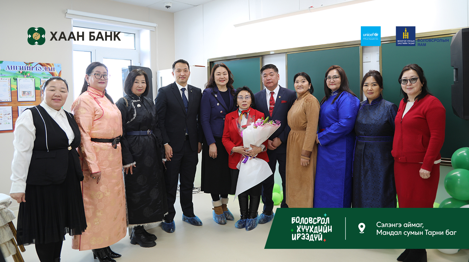 Хүүхэд бүрд тэгш, хүртээмжтэй боловсрол олгох зорилготой “Багийн бага сургууль” төслийг Боловсролын яам, НҮБ-ын Хүүхдийн сангийн санаачилгаар, ХААН Банкны санхүүжилт дэмжлэгтэйгээр хэрэгжүүлж, ийнхүү 3 дахь бага сургуулийг Сэлэнгэ аймагт барьж, хүлээлгэн өгөөд байна.