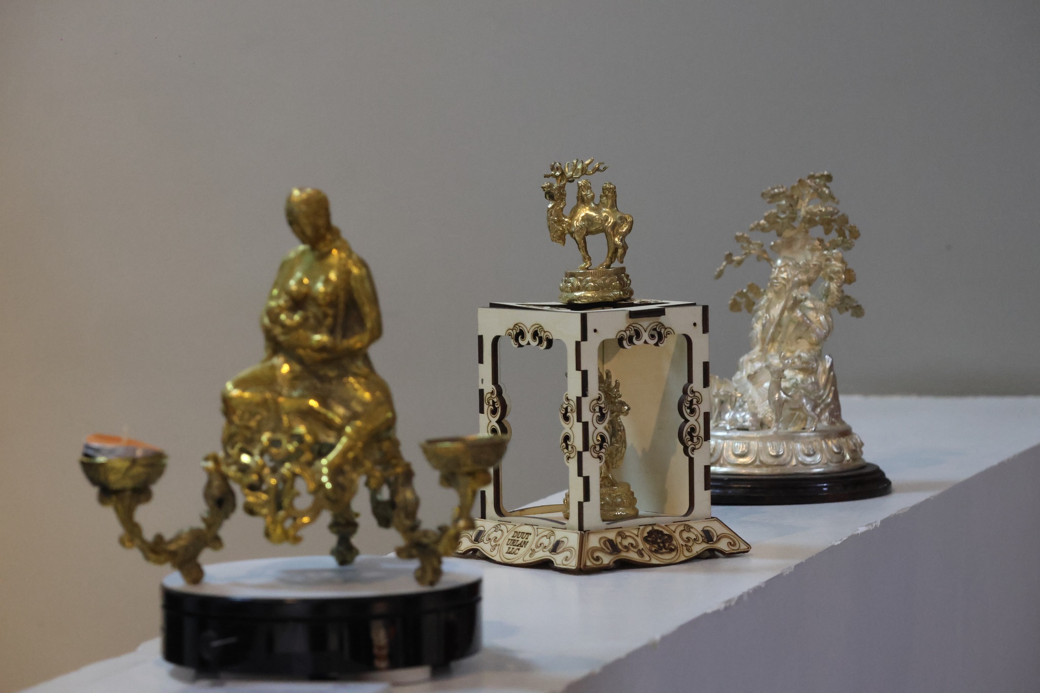 Монгол өв соёлыг түгээн дэлгэрүүлэгч “Дуут урлан” ХХК-ны уран бүтээлчдийн авьяас чадвар, уран сэтгэмжээ нэгтгэн урласан “Чингис хаан шатар”, “Болдоггүй бор өвгөн”, “Нүүдэлчин Монгол”, “Уламжлалт Монгол” болон “Цацалын халбаганы загвар”-ууд зэрэг 40 гаруй бүтээлийн дээжээс дэлгэж байна.