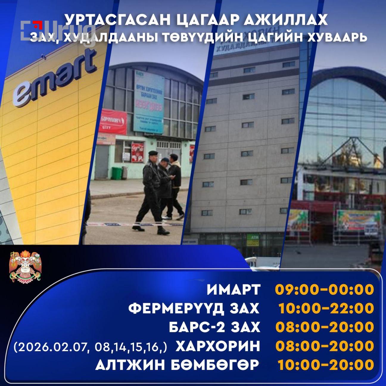 Зах, томоохон худалдааны төвүүд өнөөдрөөр эхлэн уртасгасан цагаар ажиллаж байна.