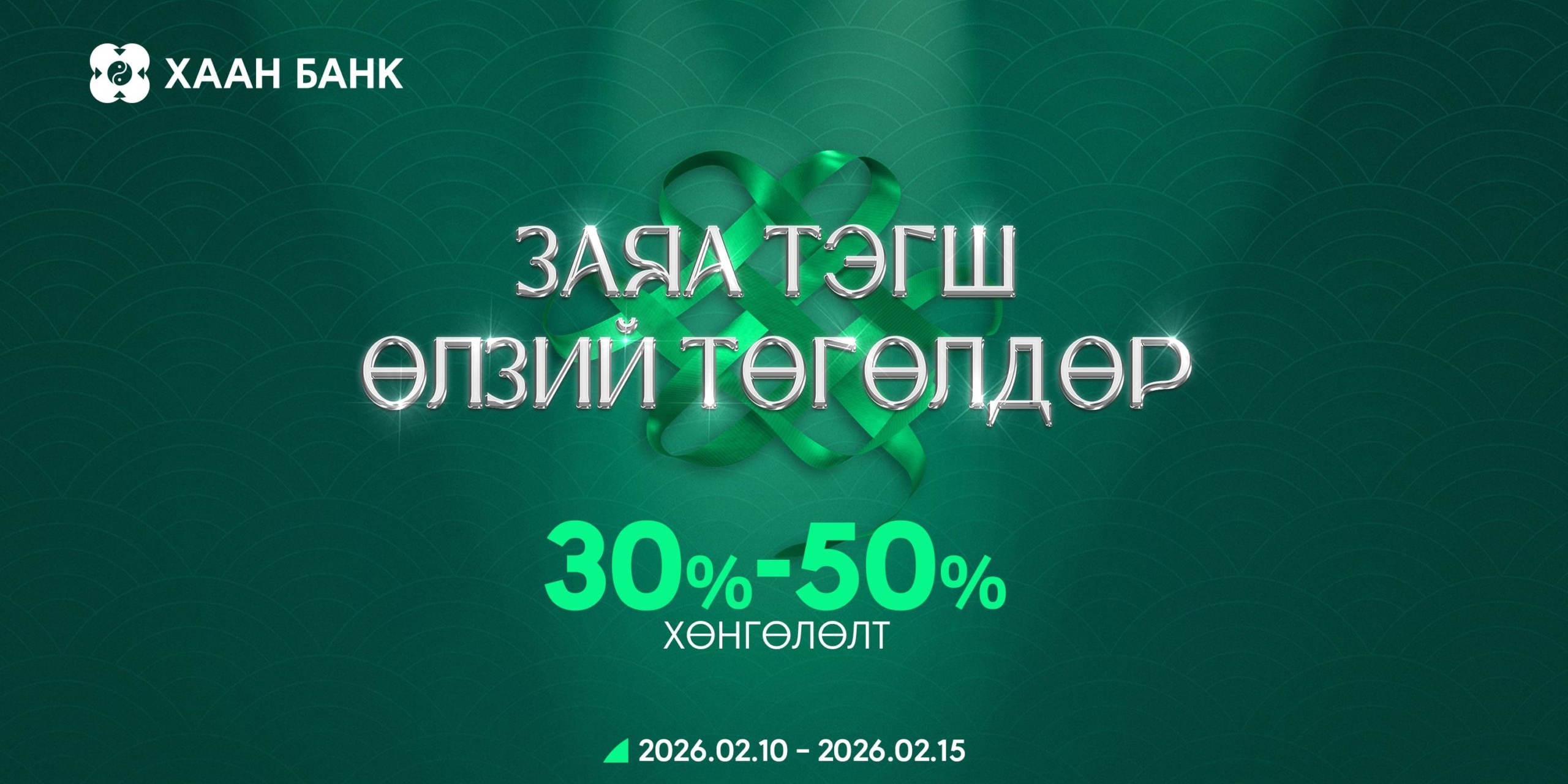 Тодруулбал, 2026 оны 2-р сарын 10-15-ны өдрийг дуустал ХААН Банкны Priority, Signature дебит карт болон бүх төрлийн кредит карт эзэмшигчид сонгогдсон байгууллагуудаар үйлчлүүлэхдээ 30-50 хүртэл хувийн хөнгөлөлт эдлэх боломжтой.