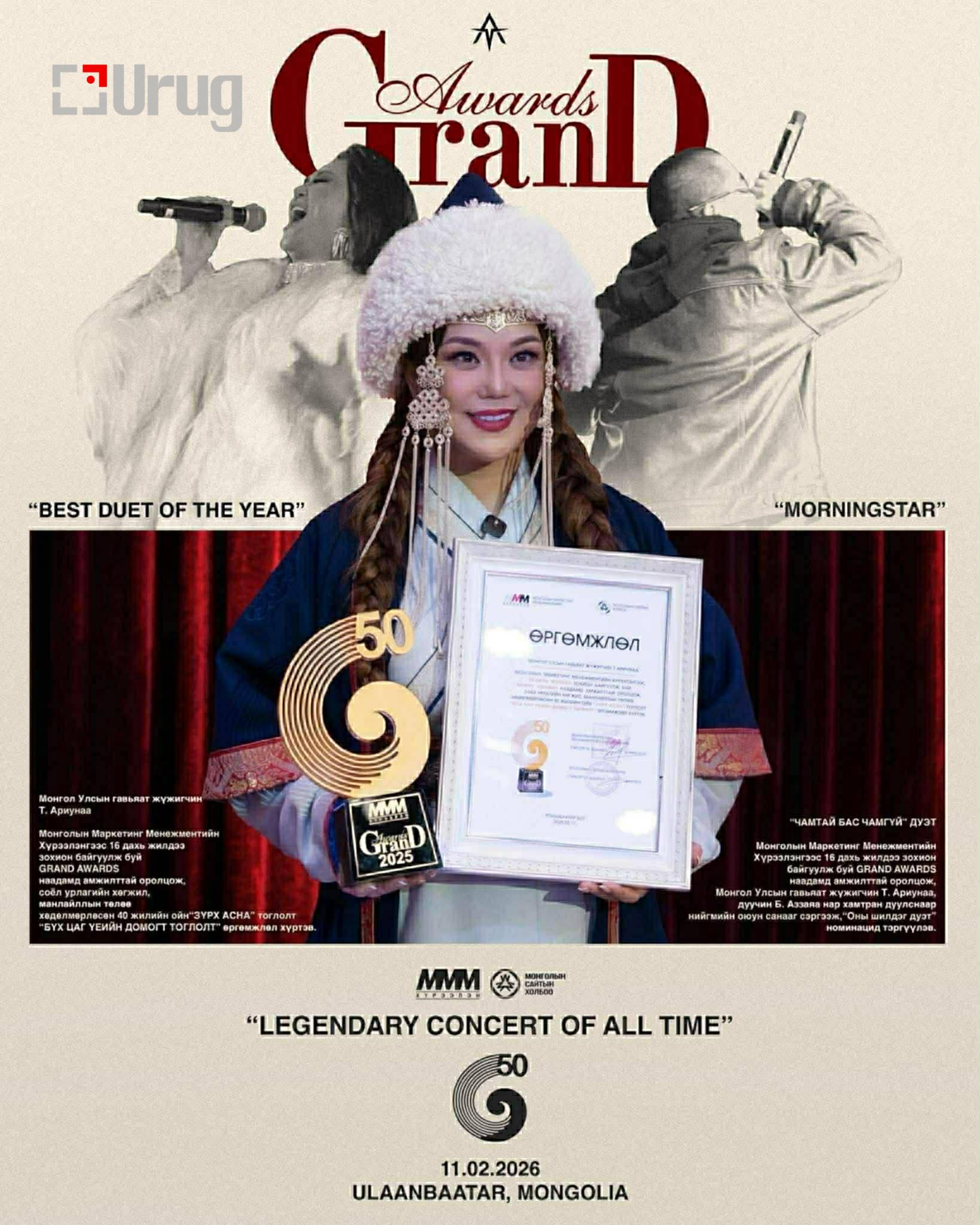 МУГЖ дуучин Т.Ариунаагын тоглолт болох нь ээ.