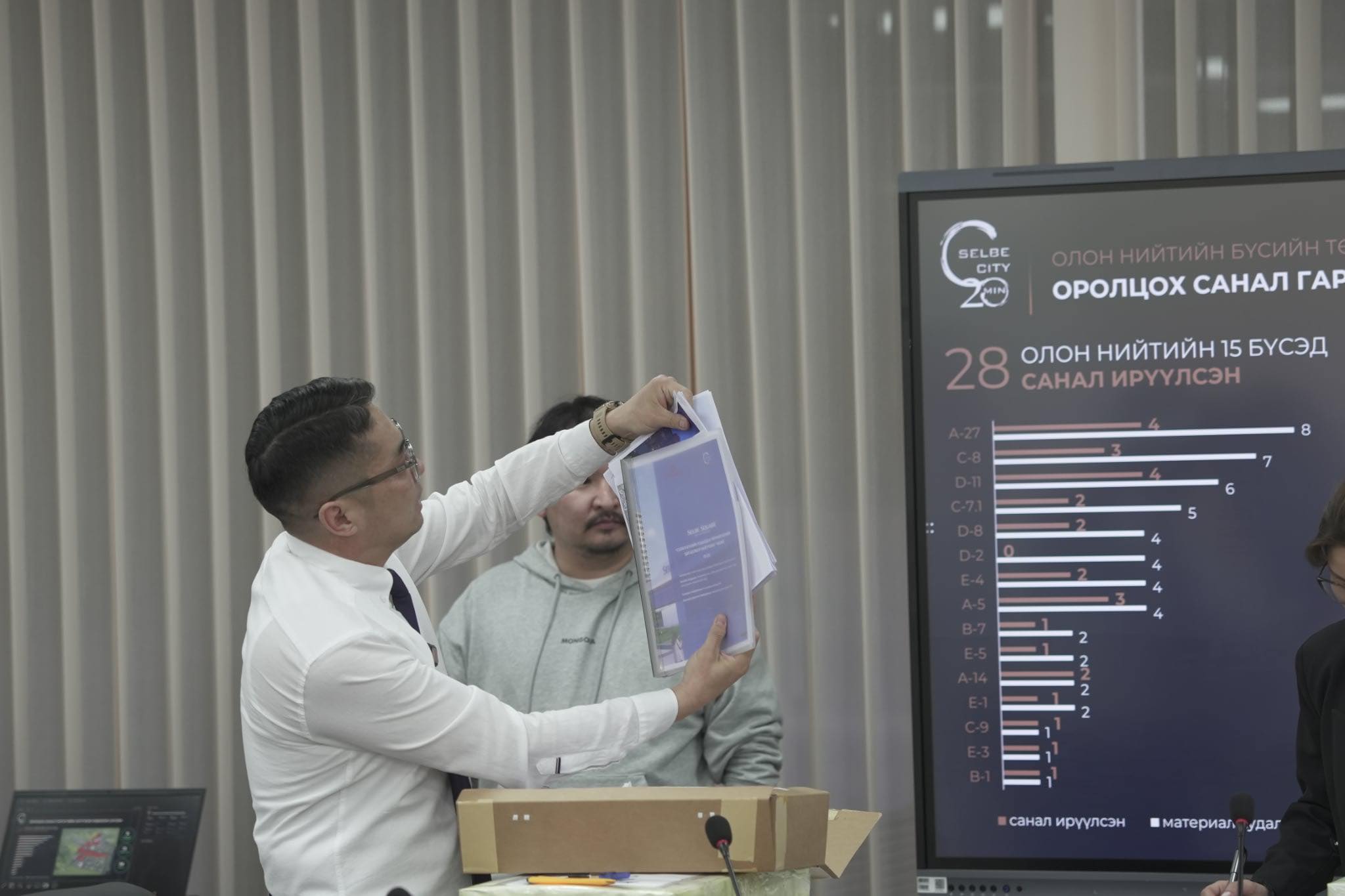 “Сэлбэ 20 минутын хот”-ын олон нийтийн бүсэд төсөл хэрэгжүүлэх сонирхолтой хувийн хэвшлийнхэн дунд өнгөрсөн нэгдүгээр сард нээлттэй сонгон шалгаруулалтыг зарласан бөгөөд өнөөдөр саналыг хаасан байна. Сонгон шалгаруулалтын материалыг www.selbecity.mn вэб сайтаар 45 хоногийн хугацаанд хүлээн авсан юм.