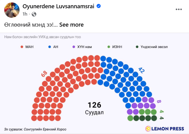 Өнөөдөр Монгол Улс 126 гишүүнтэй, таван улс төрийн намтай, гишүүдийн 65 хувь нь шинээр сонгогдсон, 25 хувь нь эмэгтэй байгаа нь олон улсад ч төлөөллийн хувьд сайн үзүүлэлт бөгөөд анхны сорилтоо амжилттай даван гарч чадна гэдэгт итгэлтэй байна. Цаашид улс төр, геополитикийн олон сорилтыг Монголын парламент амжилттай даван гарч чадна гэдэгт итгэлтэй байна.