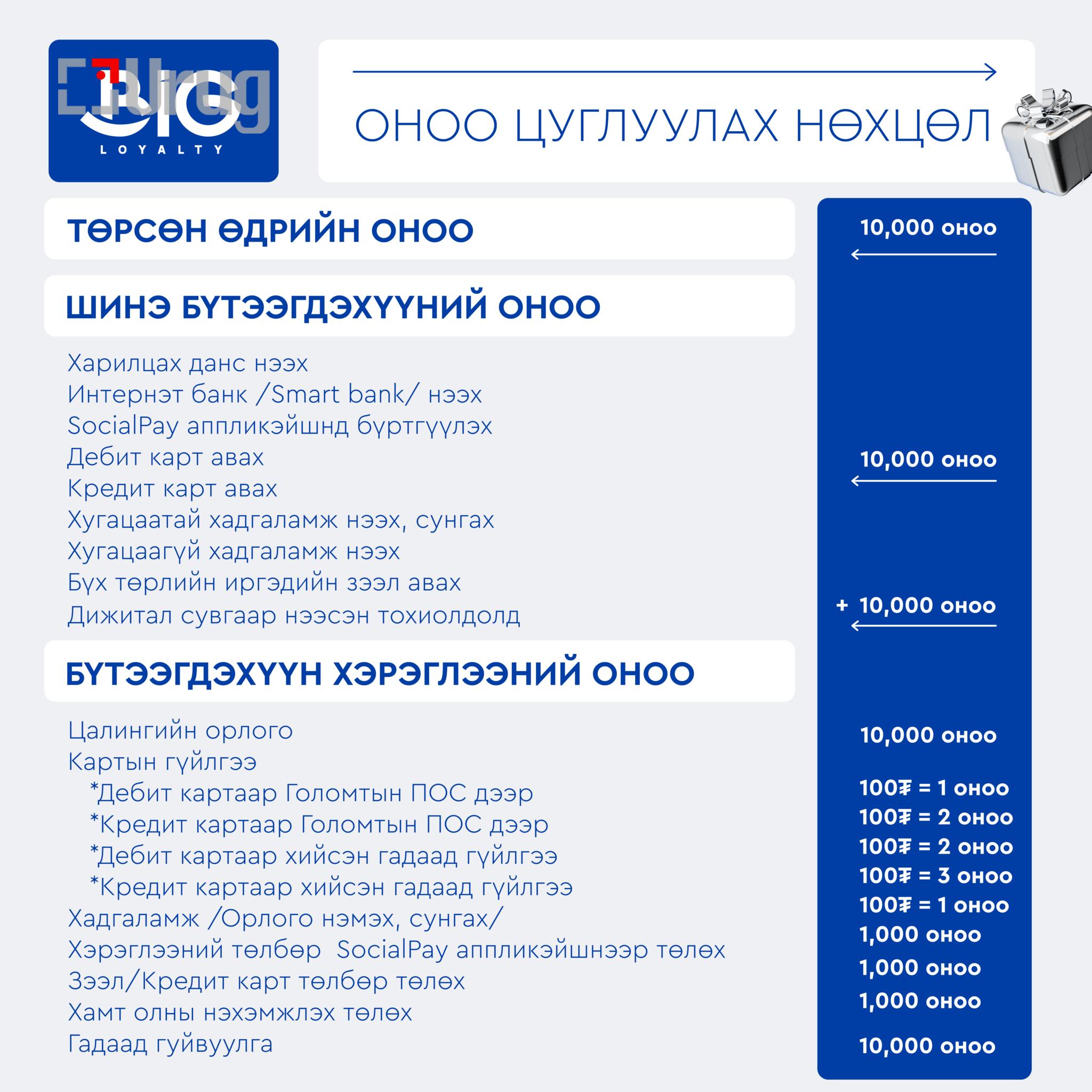 Харилцагч таны тогтмол хэрэглээ бүрийг урамшуулах зорилготой Голомт банкны Big Loyalty хөтөлбөр 2025 онд үргэлжлэн хэрэгжиж байна. Та Голомт банкны бүтээгдэхүүн, үйлчилгээг ашиглах бүрдээ оноо цуглуулж, худалдан авалтын купон болон…