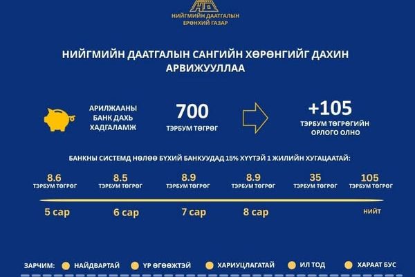 Нийгмийн даатгалын сангийн хөрөнгийг 8.9 тэрбум төгрөгөөр арвижууллаа