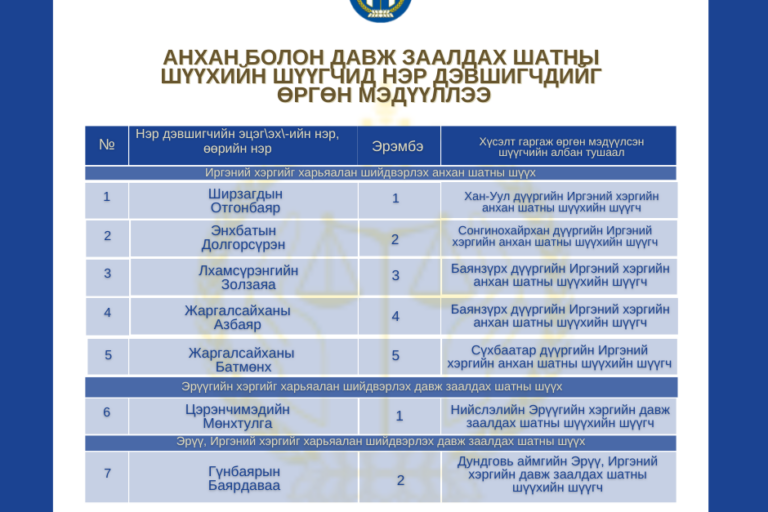 Анхан болон Давж заалдах шатны шүүхийн шүүгчид дэвшигчдийг өргөн мэдүүллээ