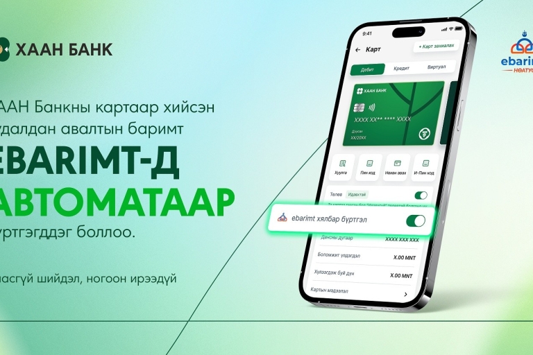ХААН Банкны картаа уншуулж, НӨАТ-ын баримтаа автоматаар бүртгүүлээрэй